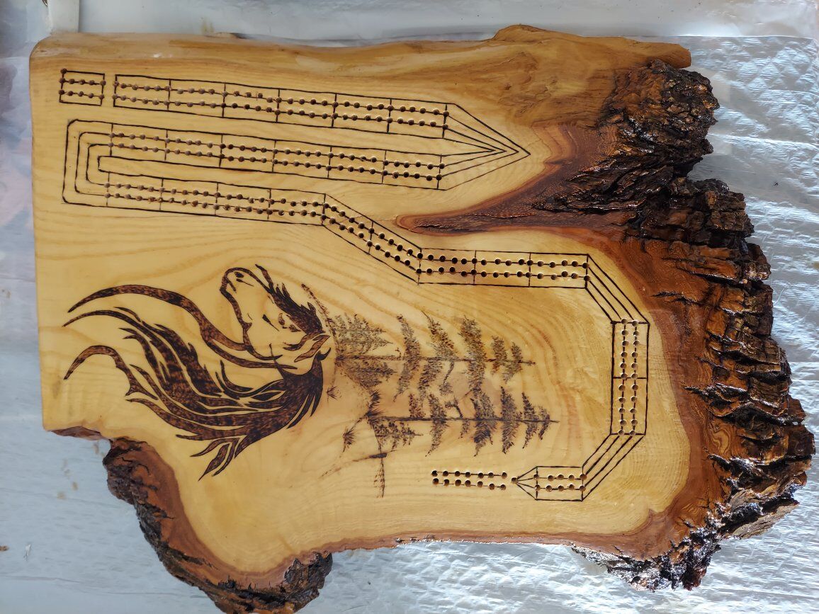 I have a few handcrafted household items for sale. Epoxy river dining/gaming table. This table is taller,(it is Bar height). Live edge entry table. Would also work well as an accent table in a cabin or on a cover patio. Coffee table with chess board. Live edge coat rack shelves. Cribbage boards. (more pictures to come soon) Asking $350.00 for dining/gaming table $200.00 for entry table $200.00 for coffee table $50.00 for Live edge coat rack $75.00 -$100.00 pending on wood and art. I will listen to reasonable offers Call for further details.