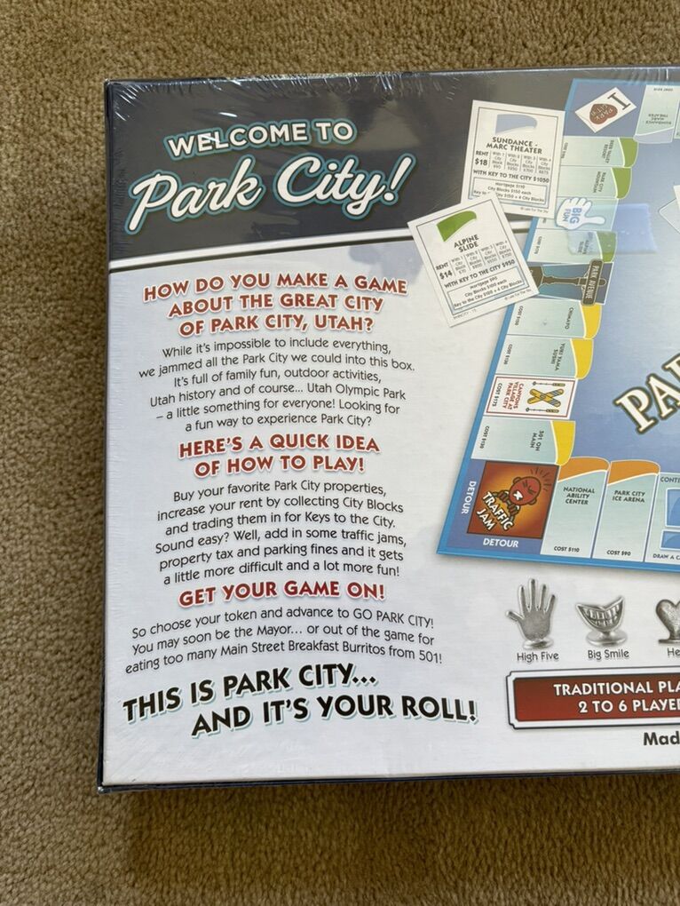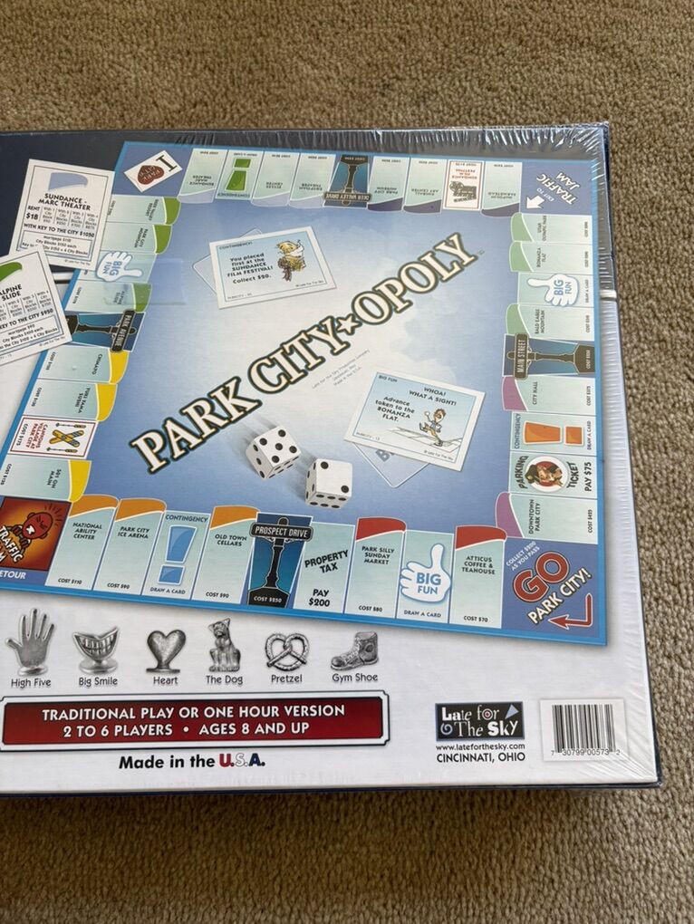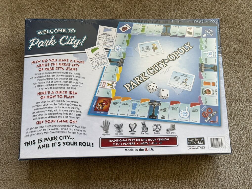 NEW (sealed in plastic) Park City-opoly Board Game: A Fun Property Trading Game Celebrating Park City, Utah! A Monopoly-style game by Late for the Sky. 2-6 players, ages 8+. New, unopened condition. Text only. Cash or Venmo.
