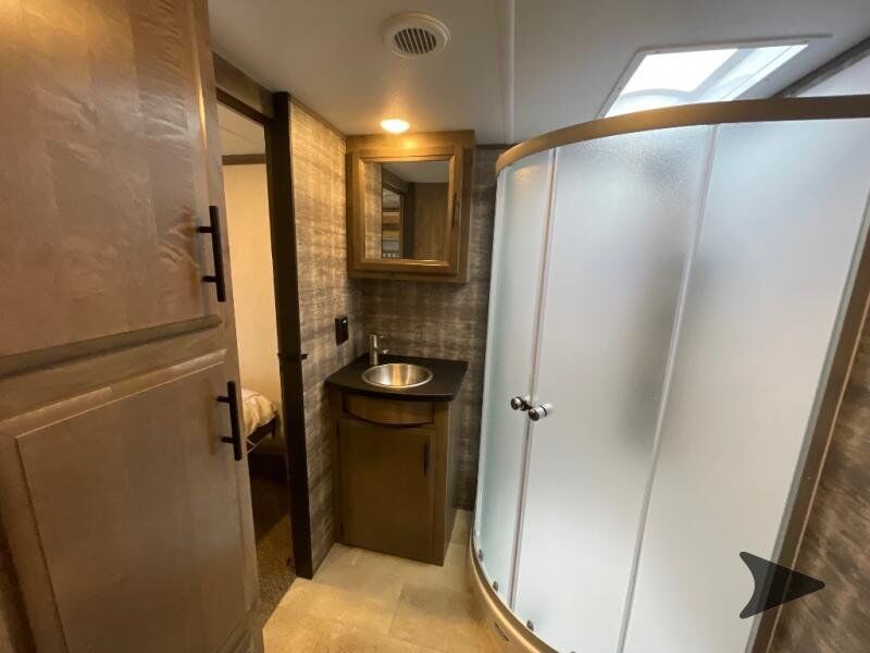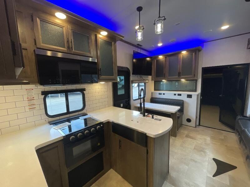 Sleep like royalty on the king bed (finally, you can starfish guilt-free), stash all your snacks in the oversized pantry, and stretch out in the dinette with bench seating. The queen bed above the flip-up sofas, loft, and extra sofa in the living room means there’s room for the whole crew—or nobody at all, if you’re embracing the solo life.