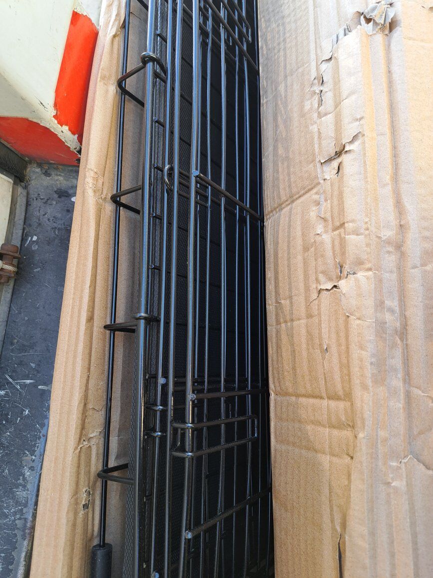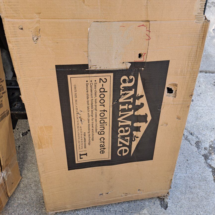 Venmoanimaze 2-door folding crate for large dogs, 36.5" L x 23.5" W x 24.7 H, easy clean, leak-proof crate pan included, convenient foldable design for travel and storage, secure slide-bolt latch with paw-blocking technology, price $50, pick it up in west valley cit, send me a message if you are interested
