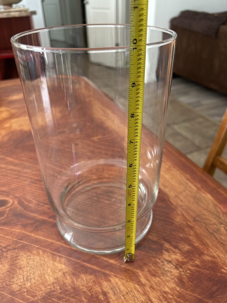 VenmoBig Glass Hurricane Candle holder or big vase for flowers or centerpiece creation, such as an open terrarium. It is 10 in tall by 6 in wide. In excellent condition. Pick up in Woods Cross by Skypark airport.