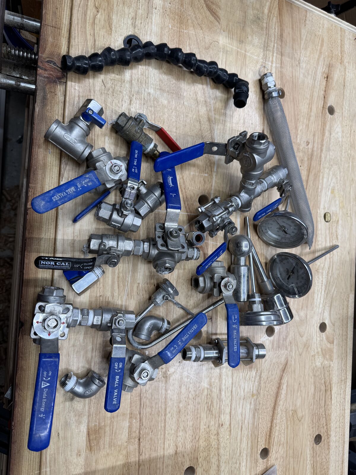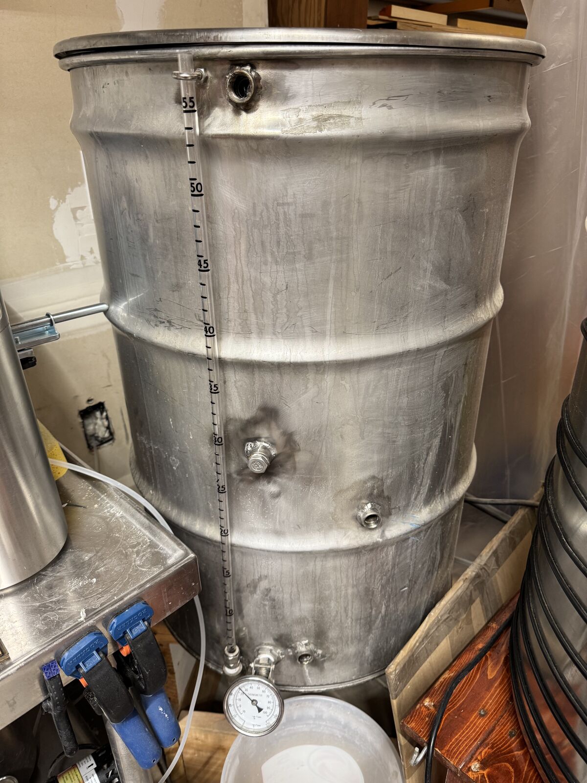 ApplePay40 gallon stainless steel boil kettle with false bottom, volume sight glass, adjustable face thermometer, bottom drain, wort return port and whirlpool, 3 tri-clamp sight glass in lid (soldered), and tri-clamp port for electric heating element (element not included), etched internal volume markings in liters $250 obo 45 gallon stainless steel mash tun with false bottom, volume sight glass, thermowell, adjustable face thermometer, bottom drain, 3 tri-clamp sight glass in lid (soldered), and wort return port, etched internal volume markings in liters $300 obo 55 gallon stainless steel drum (bubbas barrels) hot liquor tank (HLT) with 50 ft herms coil, volume sight glass, bottom drain, adjustable face thermometer (soldered), thermowell, ports for up to three electric heating elements (elements not included), water in port for recirculating, bottom drain $400 obo All fittings are welded on unless otherwise mentioned with the exception of the heating element in the boil kettle, and one of the element ports in the HLT. I have lots of valves (pictured) three way and one way, that I will include if someone wants all three kettles. Brew stand will be included with the boil kettle and mash tun if someone and wants it, otherwise it will go to whoever wants it and buys the first of those two kettles. I never got around to making a decent stand for the HLT. Boil kettle and mash tun lids are gasketed and can be sealed for low oxygen brewing. Willing to sell individually and take offers for the valves/fittings. homebrew, homebrewing, beer