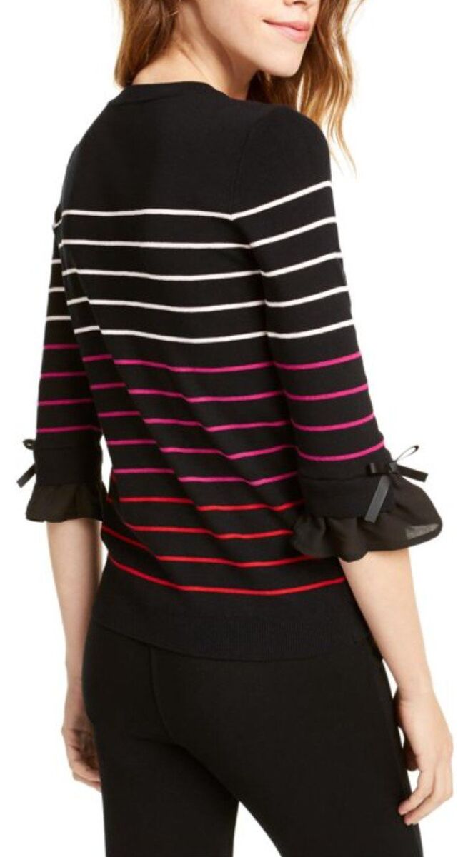 ZelleThe Maison Jules Women's Ribbed Trim Striped Crewneck Sweater in Black XXL is a stylish and comfortable pullover sweater perfect for the winter season. Made from a knit fabric, this sweater features long sleeves and a regular fit. The black striped pattern adds a classic touch to the casual design, making it a versatile piece that can be easily machine washed for easy care. The Maison Jules brand ensures quality and sophistication, while the XXL size caters to plus-size women.
