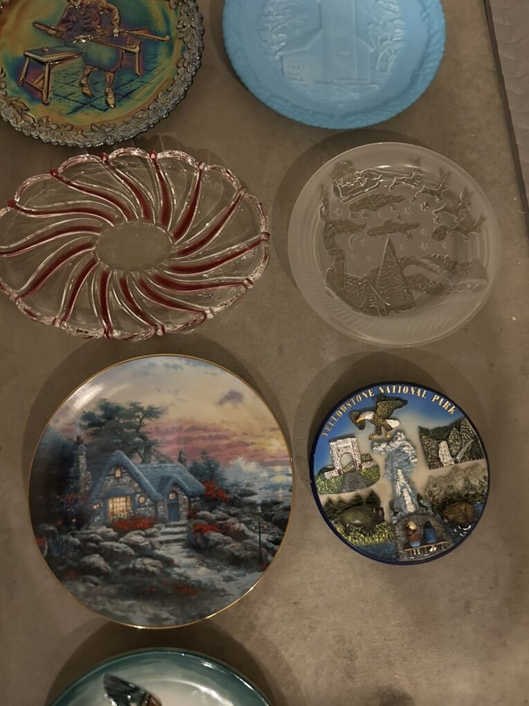 ApplePayFenton glass, and various collectible plates. Hamilton Collectiom Native American, beautiful Mallard Duck, 2 Christmas plates, Yellowstone Memorabilia, and Thomas Kinkade. $10 each for Hamilton Collection plates, $10 each for Fenton, $5 each for remaining OBO.
