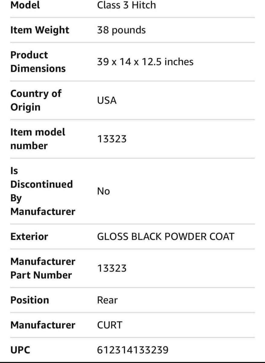 CURT 13323 Class 3 Trailer Hitch, 2-Inch Receiver, Fits Select Toyota Tacoma, GLOSS BLACK POWDER COAT