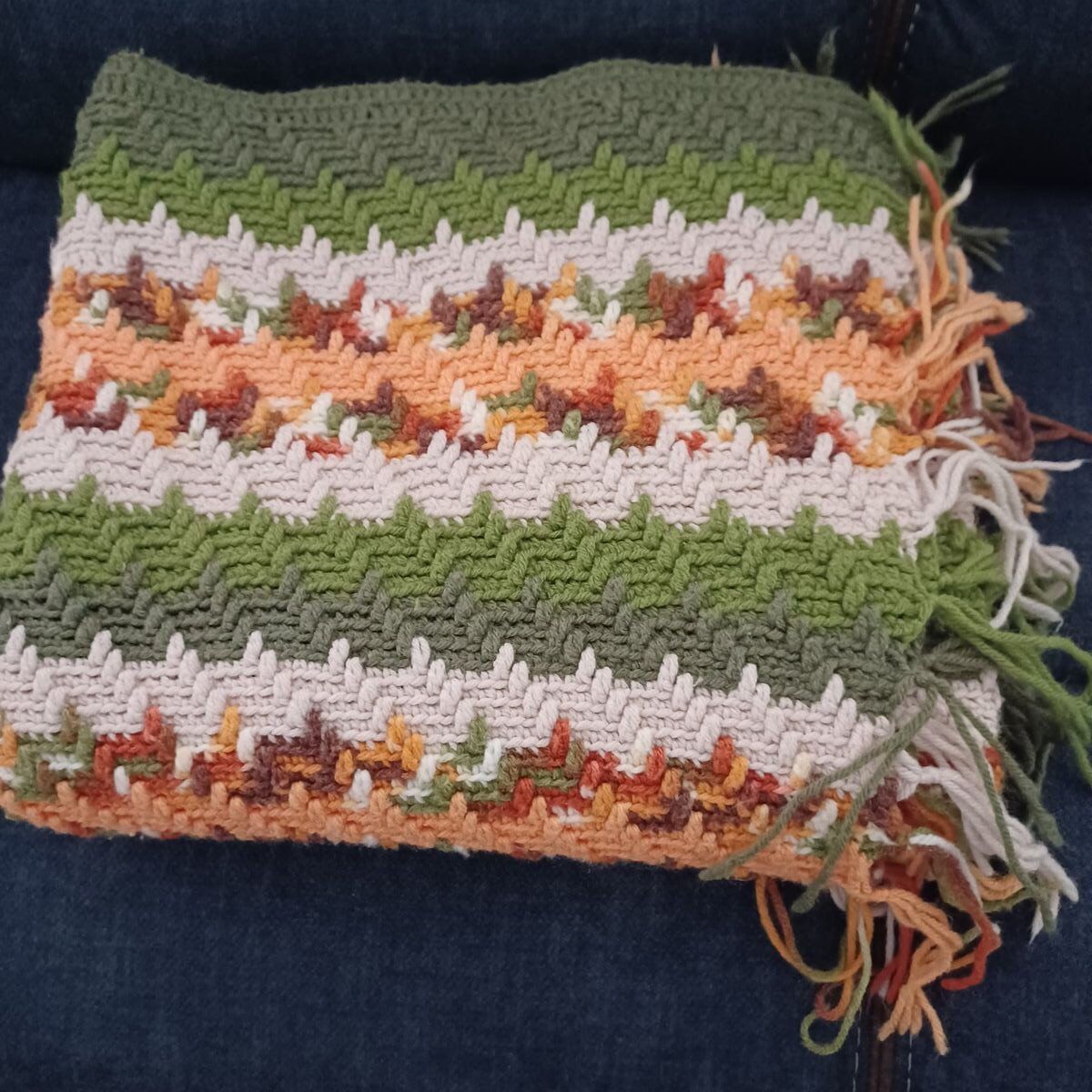 VenmoColorful stripped crochet afgan blanket. Beautiful stitch weave pattern Approx. 72x48