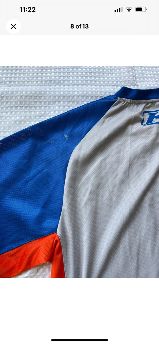 Klim Dakar Motorcycle Jersey size Large. Orange/Blue. Small abrasion on shoulder (see photo) otherwise in great condition.