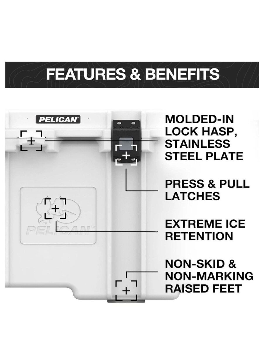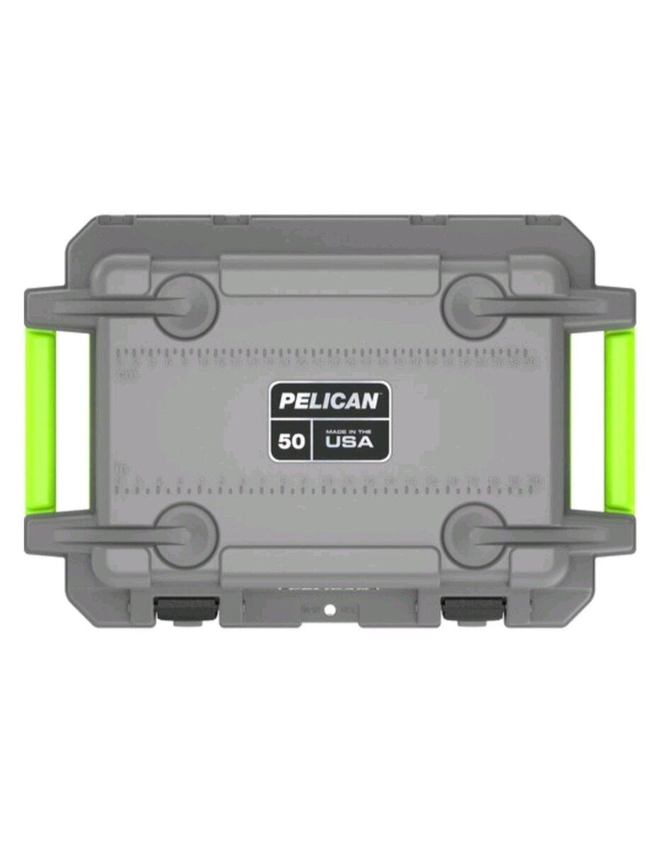 Brand new still in the box, Pelican 50qt cooler dark grey and green, Lifetime warranty. If the ad is still up then it's still available.