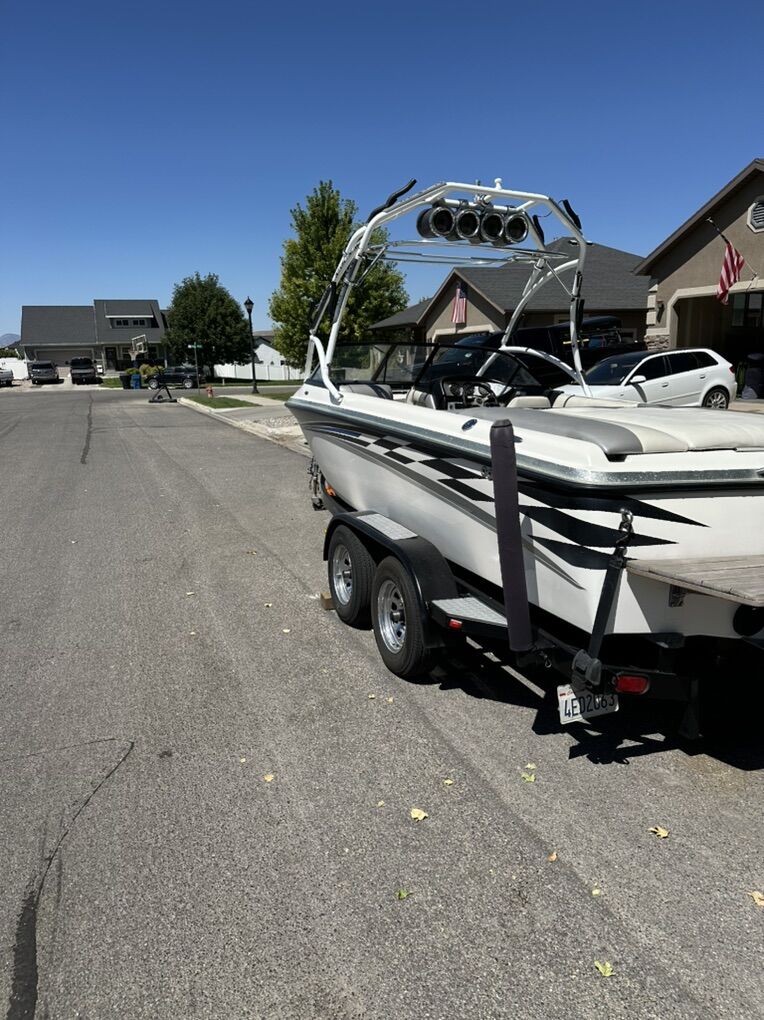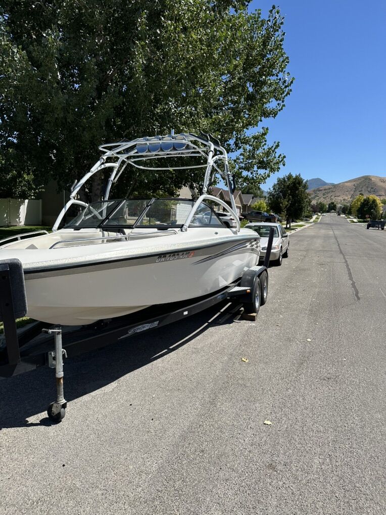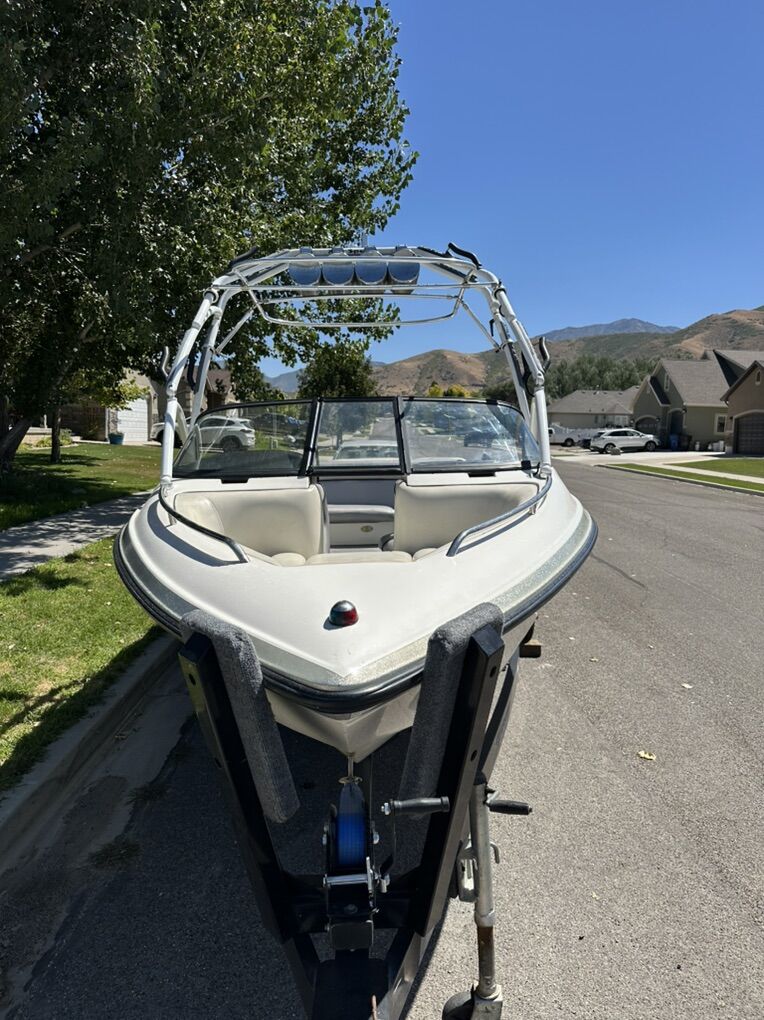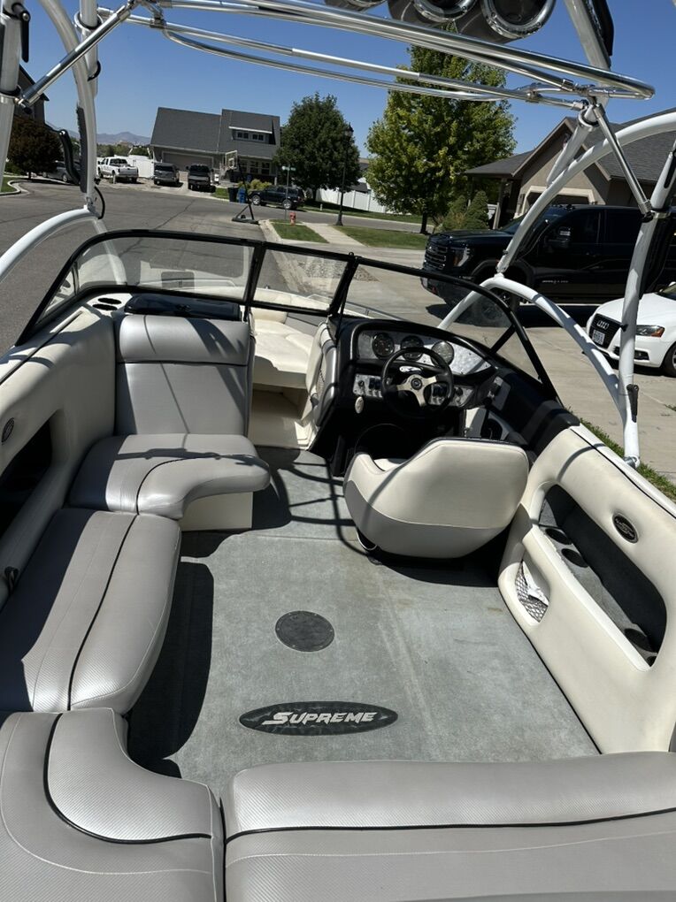 2003 Supreme V220 ski/wakeboard boat. 700 hours, service done at 690 hours, new impeller, new ignition switch, upholstery has been replaced and in good condition, extreme phat tower with removable bimini top, 4 tow speakers, 4 in boat speakers, 12 inch sub and amp, stereo is amazing. 2 rear phat sacks with electric pumps. Boat runs and drives great! Trailer in good condition, new carpet on the bunks, tires are good and have a new spare also. Boat is still being used and hours may change. $21,500, title in hand. Don’t come at me with some ridiculous low offer, I’m not interested. If it’s posted then it’s still for sale. Boat is priced well.