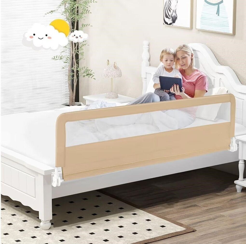 Costzon Bed Rail for Toddlers, 2 PCS Extra Long Swing Down Safety Bed Guards w/Straps for Convertible Crib, Kids Twin, Double, Full Size, Queen & King Bed, Folding Bed Rails for Baby (Beige).