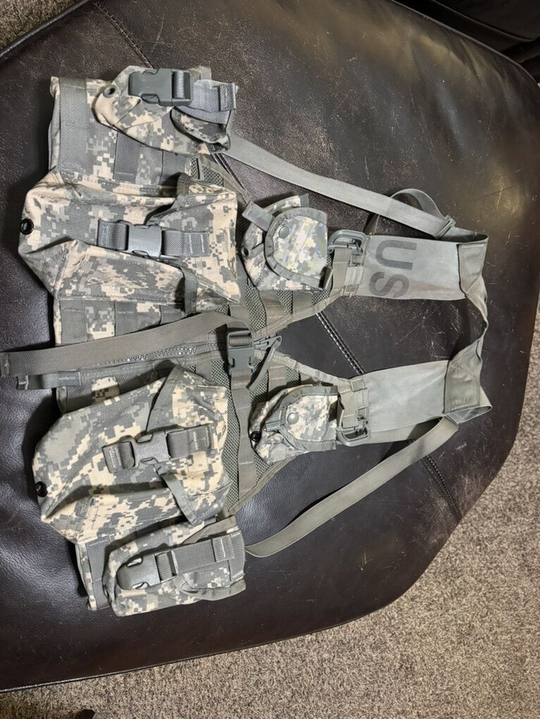 Vest has a zipper and an adjustable belt. It has molle webbing to add other accessories.