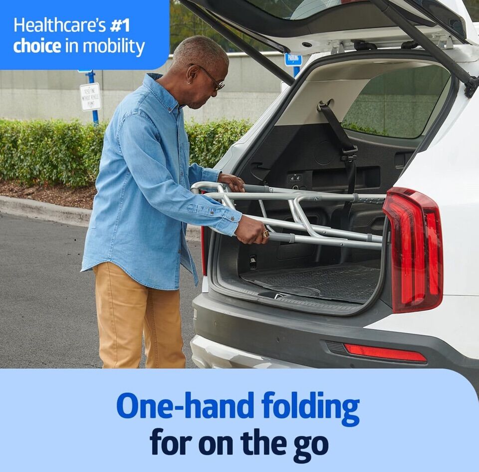 Brand Medline Color Metallic Material Metal Item Weight 8 Pounds Product Dimensions 17D x 17.5W x 32H Age Range (Description) Adult STURDY CONSTRUCTION: Designed for adults. This sturdy aluminum walker has a weight capacity of 300 lbs. and side cross braces for extra durability PUSH-BUTTON,HEIGHTADJUSTABLELEGS: Quickly and easily adjust the height from 32· 38 to suit user heights between 55·6'4 LIGHTWEIGHT. EASY-FOLD DESIGN: Lightweight walker weighs just 6 lbs. with 2-button mechanism that makes it easy to fold and for convenient storage or travel ENHANCED MANEUVERABILITY: The s· wheels glides smoothly over various surfaces. making this the perfect walker for indoor and outdoor use COMFORTABLEHAND GRIPS: Ergonomic hand grips provide a comfortable grip and minimizes hand fatigue: 17- width between grips offers room for a natural walking pace.