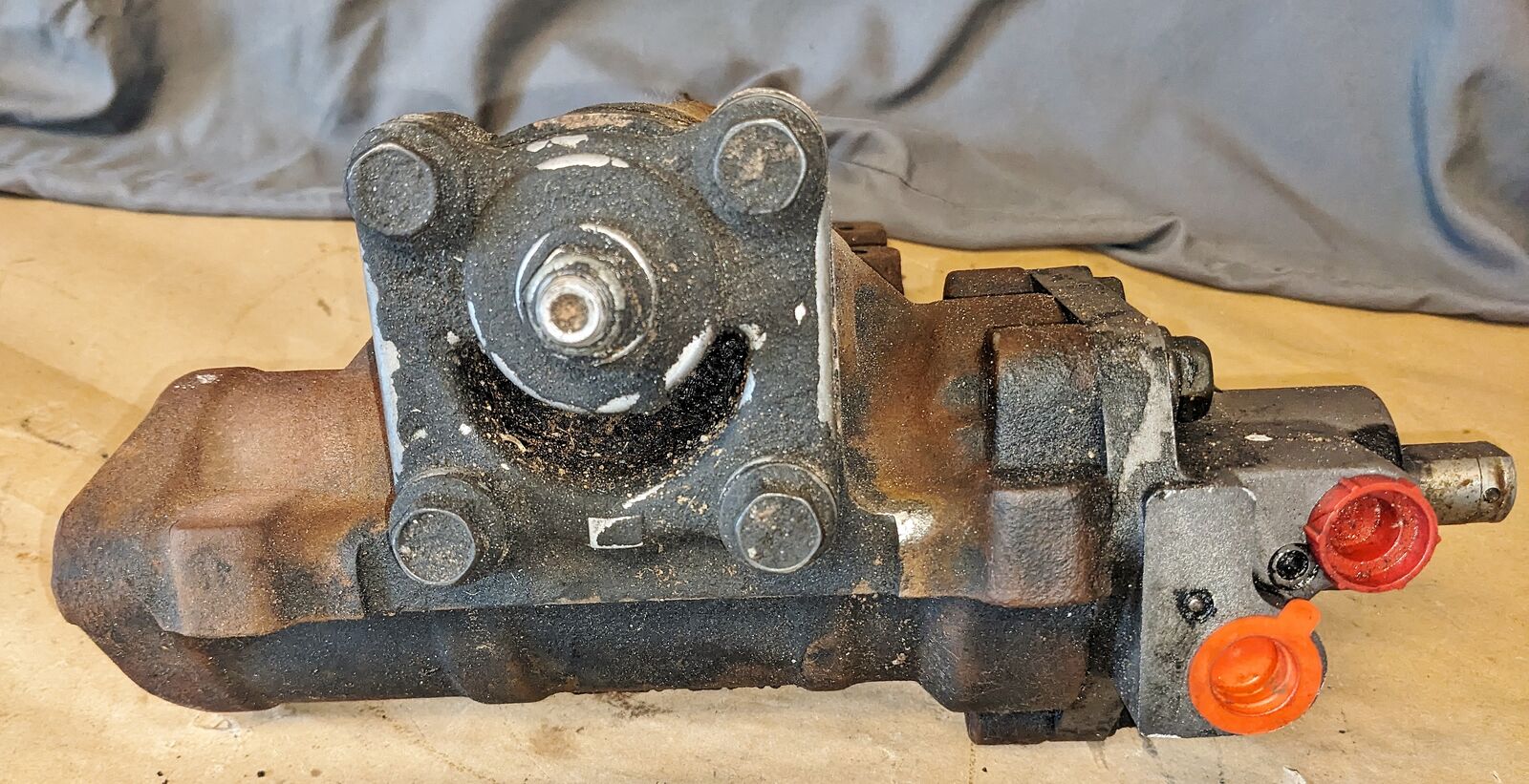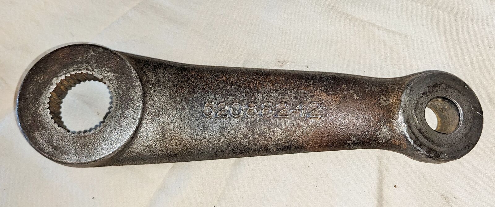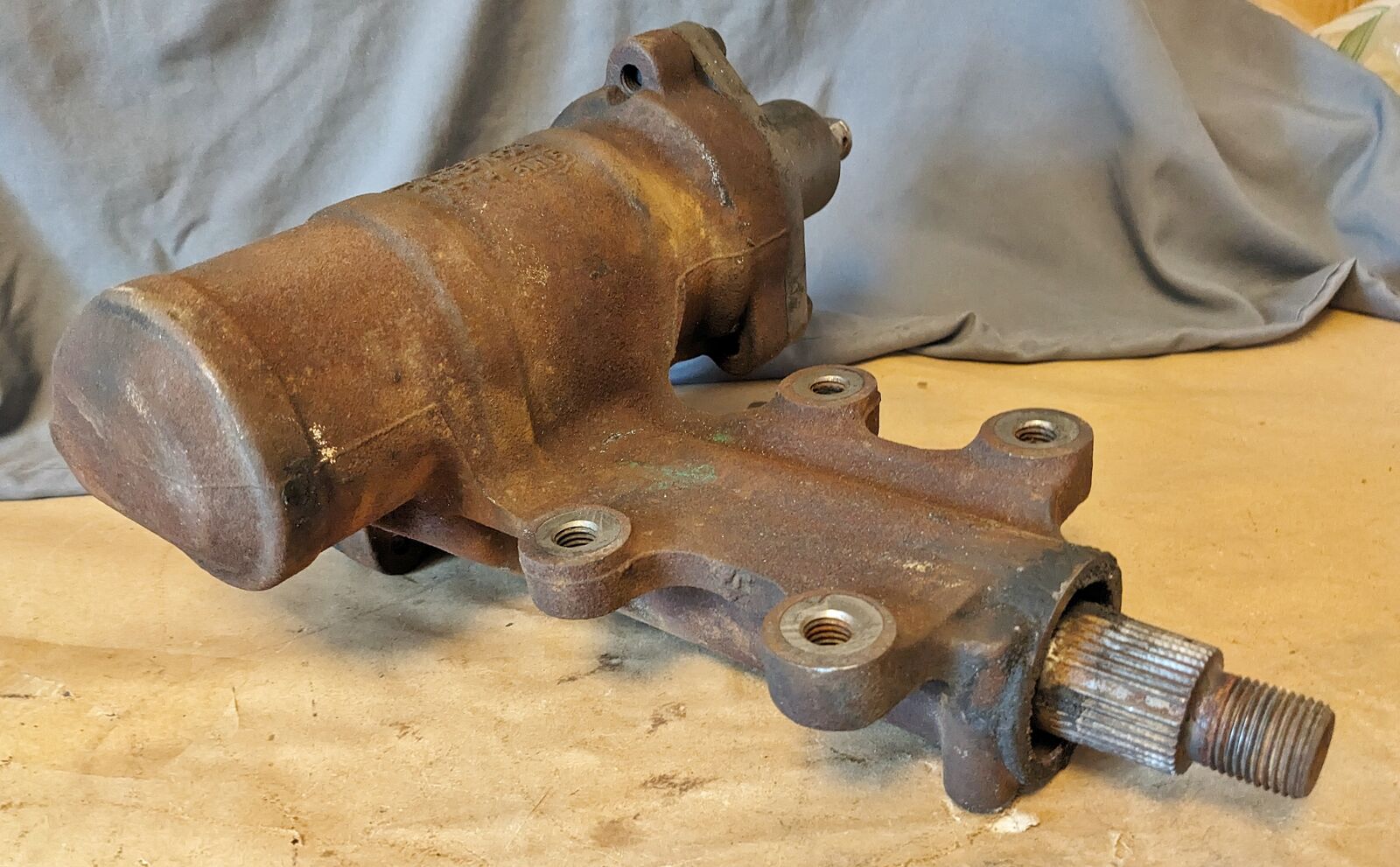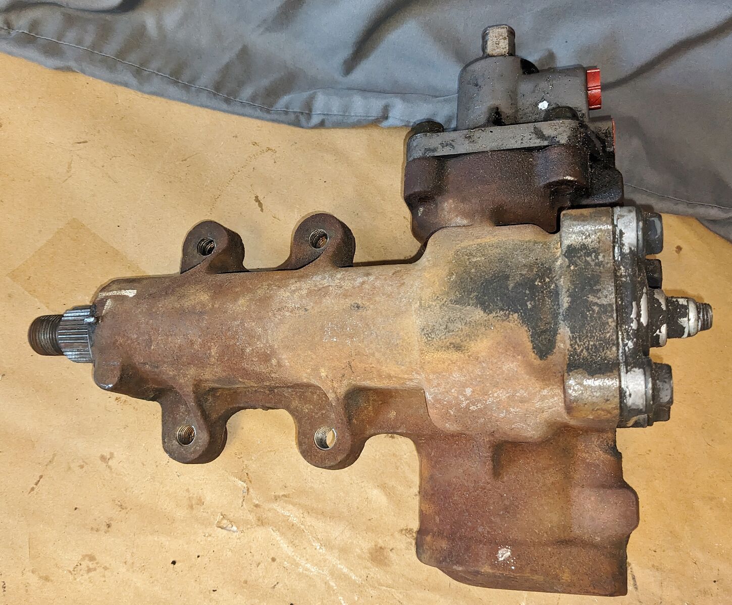 Looks externally complete, shafts turns with no slop but untested past that; pitman arm straight and solid, splines look good.