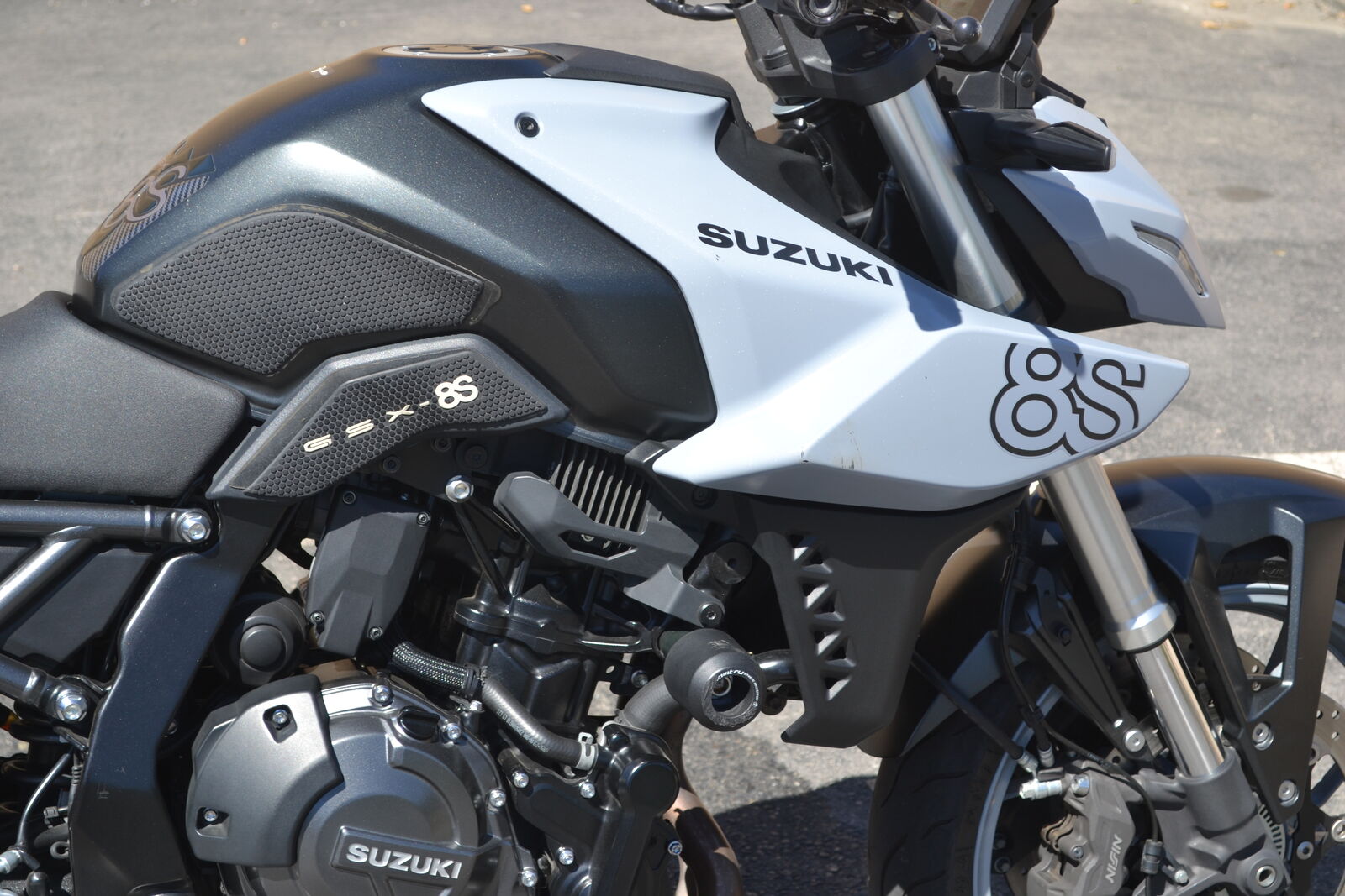 Powered by a compact 776 cc liquid-cooled DOHC parallel-twin with Suzuki’s Cross Balancer tech, this naked streetfighter delivers smooth, torque-rich acceleration from low RPM through the rev range. THIS ONE HAS JUST 7,600 MILES AND A CLEAN TITLE! Built on a rigid yet agile steel backbone frame, inverted KYB front forks, link-type KYB rear suspension, and lightweight cast wheels, it blends stable straight-line performance with nimble handling. Packed with modern rider aids—track-worthy ABS, Suzuki Intelligent Ride System (multiple ride modes, traction control), bi-directional quick shifter, clutch assist, easy-start, and low-RPM assist—all displayed on a crisp 5″ color TFT screen. Ideal for riders seeking a futuristic, feature-filled naked roadster that delivers accessible performance, agility on twisty roads, and confidence-inspiring technology—without breaking budget!