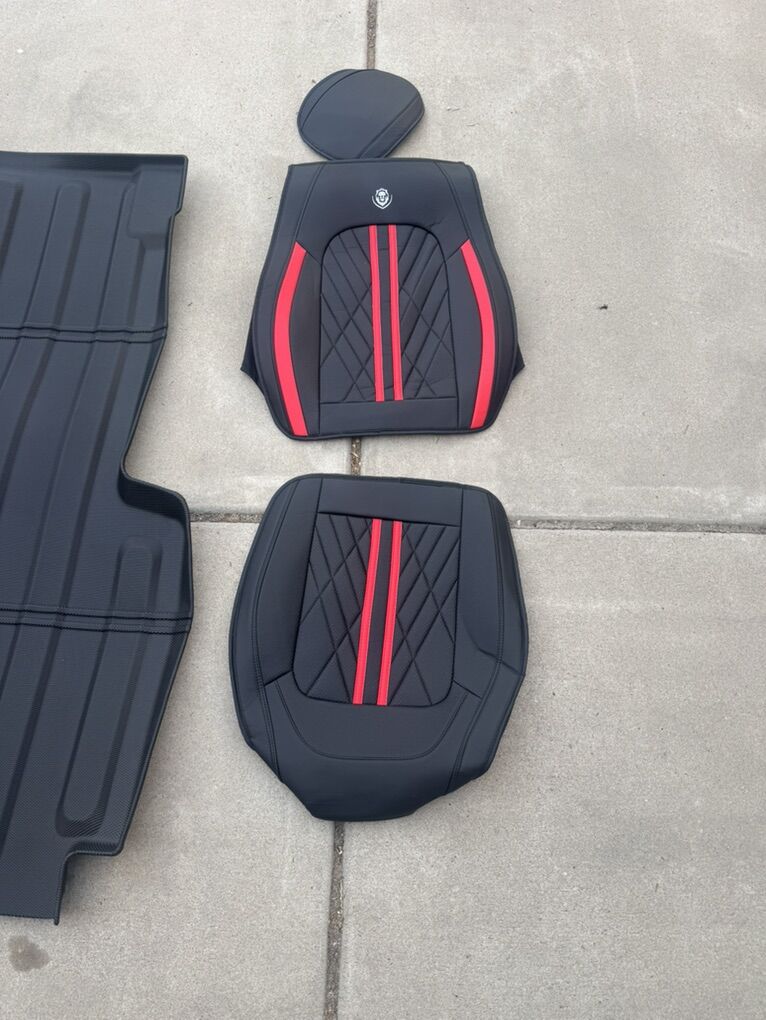 VenmoUpgrade and protect your Jeep Gladiator with this complete interior and bed protection package. Includes a Lasfit precision-fit bed liner and a full set of red-and-black custom seat covers for front seats