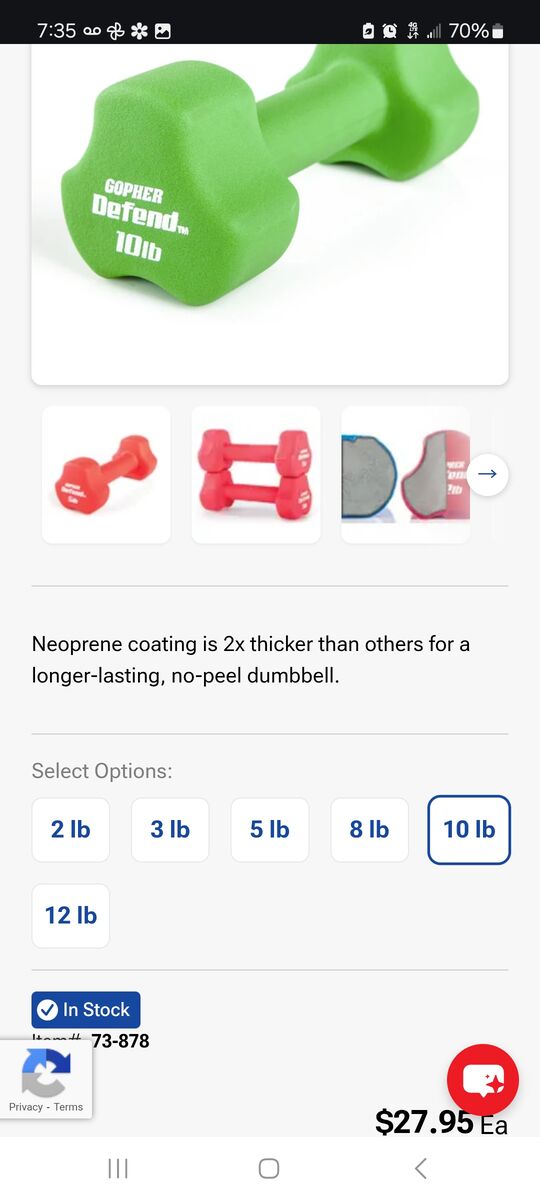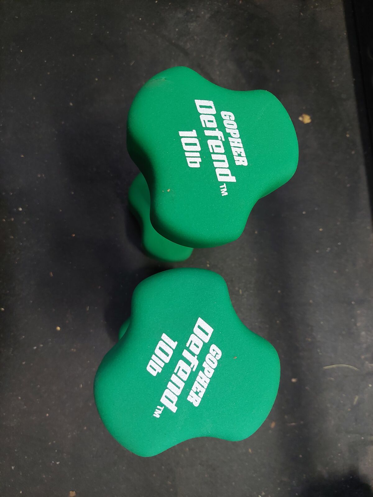 VenmoThis is a set of 10 lb dumbbells. They are made by Gopher Defend. They are neoprine coated. Further description can be found in one of the pictures. They retail for 27.95 each without shipping and handling and tax. I am selling them for 25.00 for the set. They are located in Brigham City. I often work in Ogden and as far south as Syracuse. I am happy to meet up in those locations, or along the way. Text is best. Thanks for looking. I do have 2 sets of these.