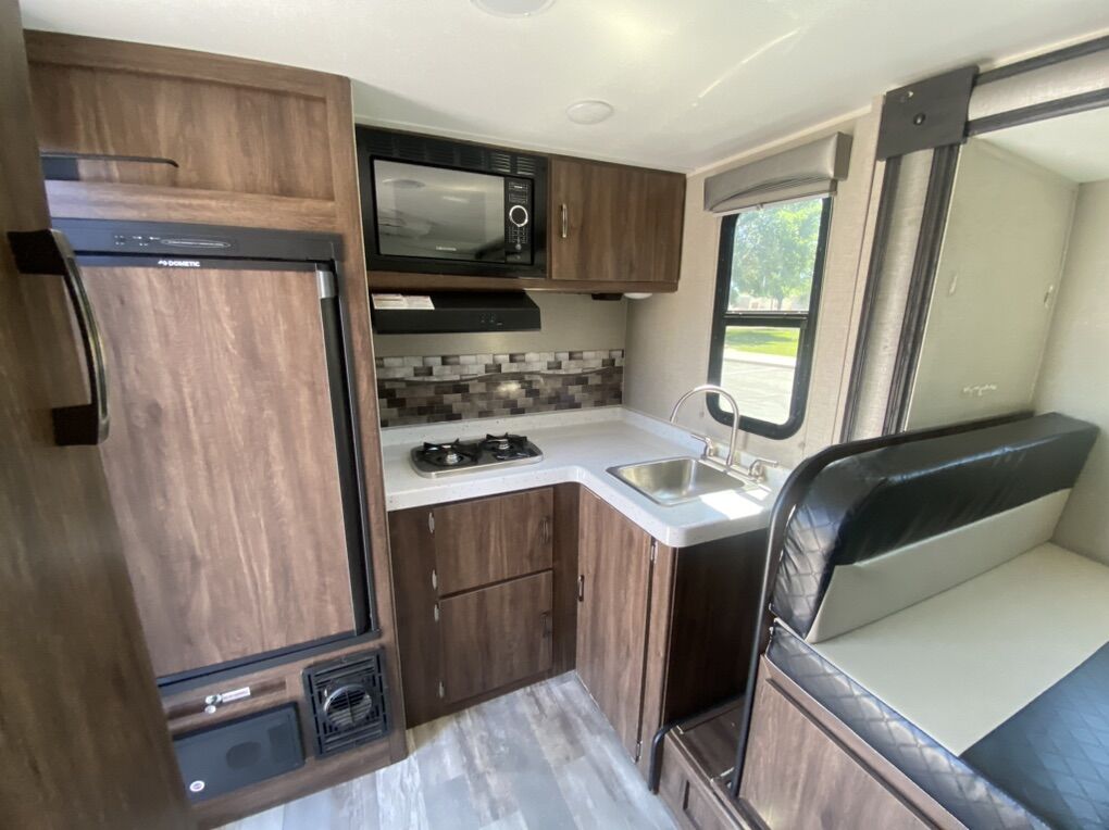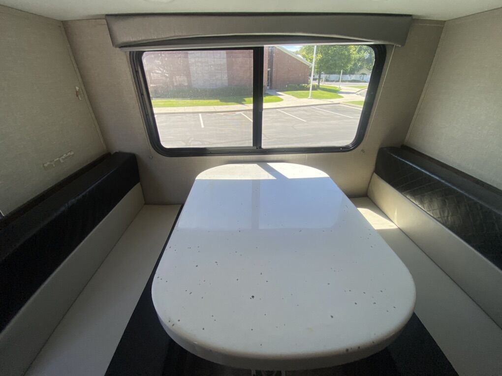 GVWR: 3955 lbs Able to be towed and pulled by many smaller 4 cylinder and 6 cylinder engines. Queen size bed with a kitchen table drop-down full size bed. Small kitchenette