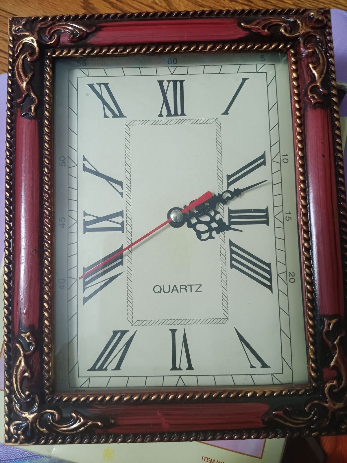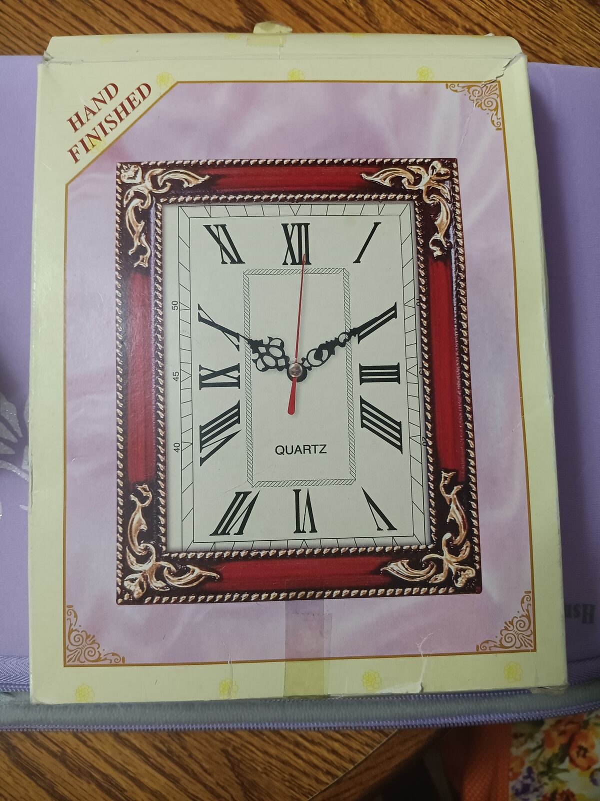 VenmoThe product is an antiqued finished quartz desk clock with a hand-finished multicolor fiberglass design. It features an analog display and is powered by an included battery. The clock has an antique style with a cherry finish and is manufactured from 2020 to the present. The brand of the clock is Quartz and it does not specify the chime sequence.