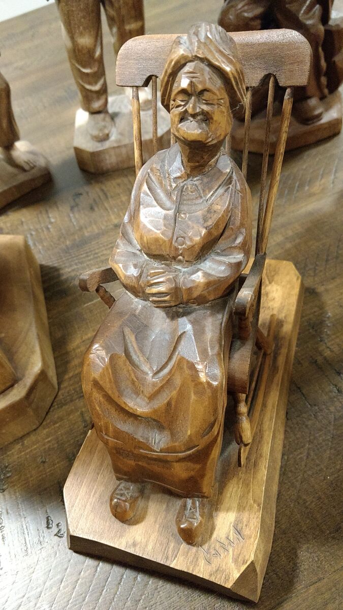 This is for a folk art carving of rocking grandmother. I've owned this for 45 years. I bought it from a craft shop in Gatlinburg, Tennessee. It is a one of kind carving. It's not a production piece. You won't find another one like it.