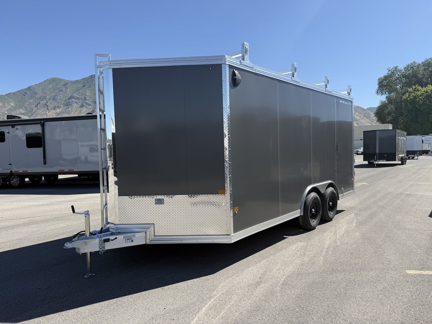 Check out these all-aluminum Stealth trailers from Alcom. Get the job done right with an enclosed trailer and contractor package designed specifically for your needs. The all-aluminum construction means these trailers are light, they don’t rust, and they hold up incredibly well to the harsh mountain west climate. The bonded sides give them a smooth sleek look going down the road. Come see why the Stealth trailers are a leader in the cargo trailer category and why Life Elevated Trailers is the highest google rated dealership in the state.