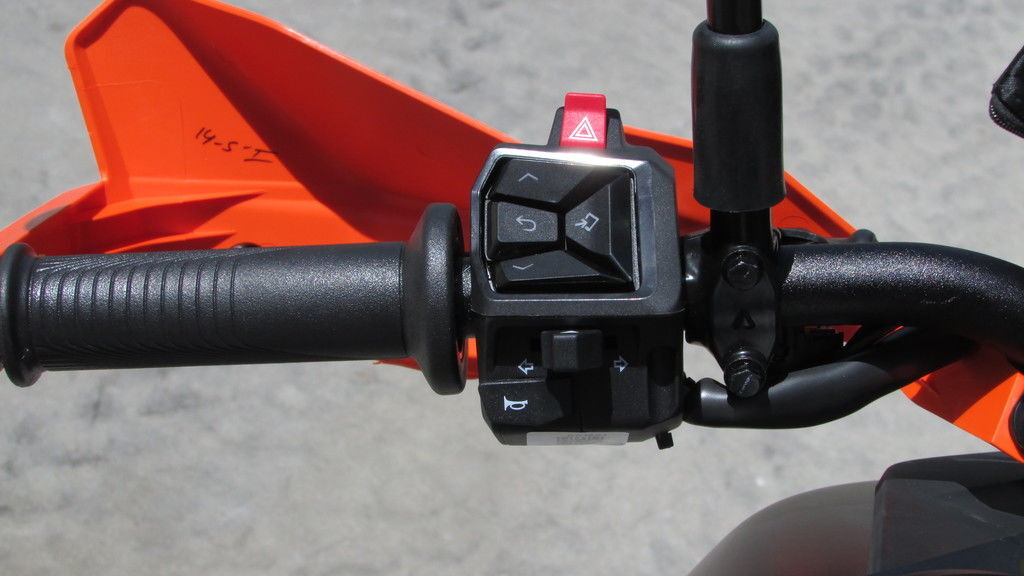 With its 21" front and 18" rear heavy-duty spoked wheels at each end, the KTM 390 ADVENTURE R makes tackling the toughest dirt trails a breeze. No more worries about cracked or chipped rims; these spoked setups perfectly complement the offroad-orientated Mitas Enduro Trail E07+ tires, providing unmatched confidence when charging off into the wilderness.