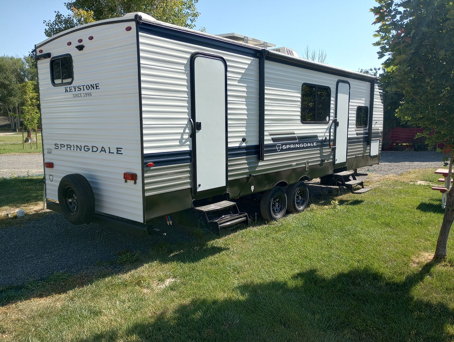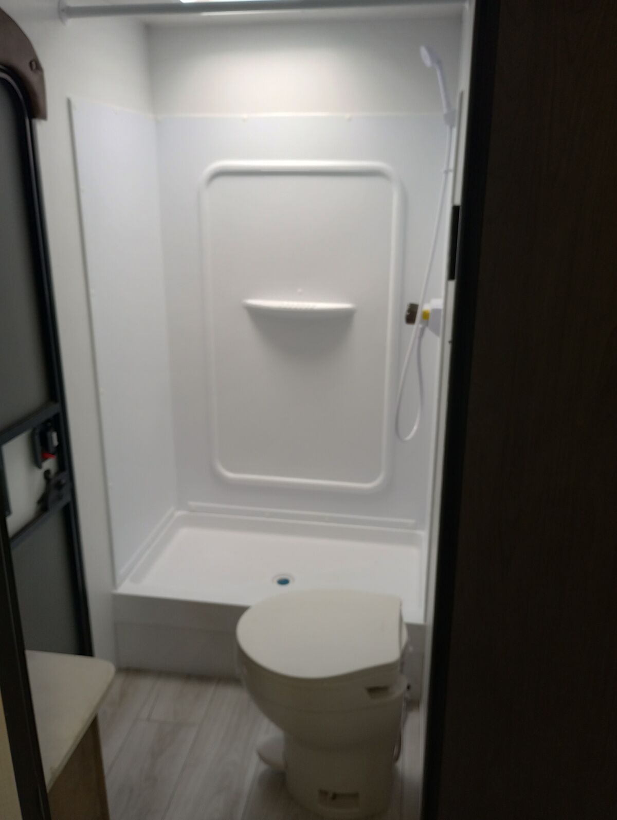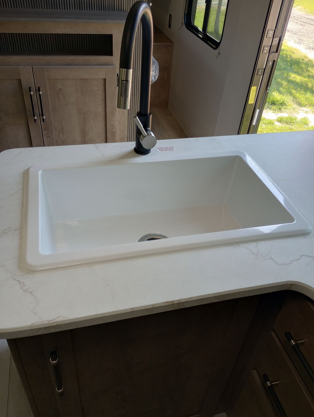 This dual entrance Bunk House model is a great family RV. Access to the bathroom helps keep the “outdoor” traffic to a minimum. The large slideout provides a very open main room for the entire family to sit around and play games or enjoy a movie night. This RV sleeps 8 and has plenty of outside storage.