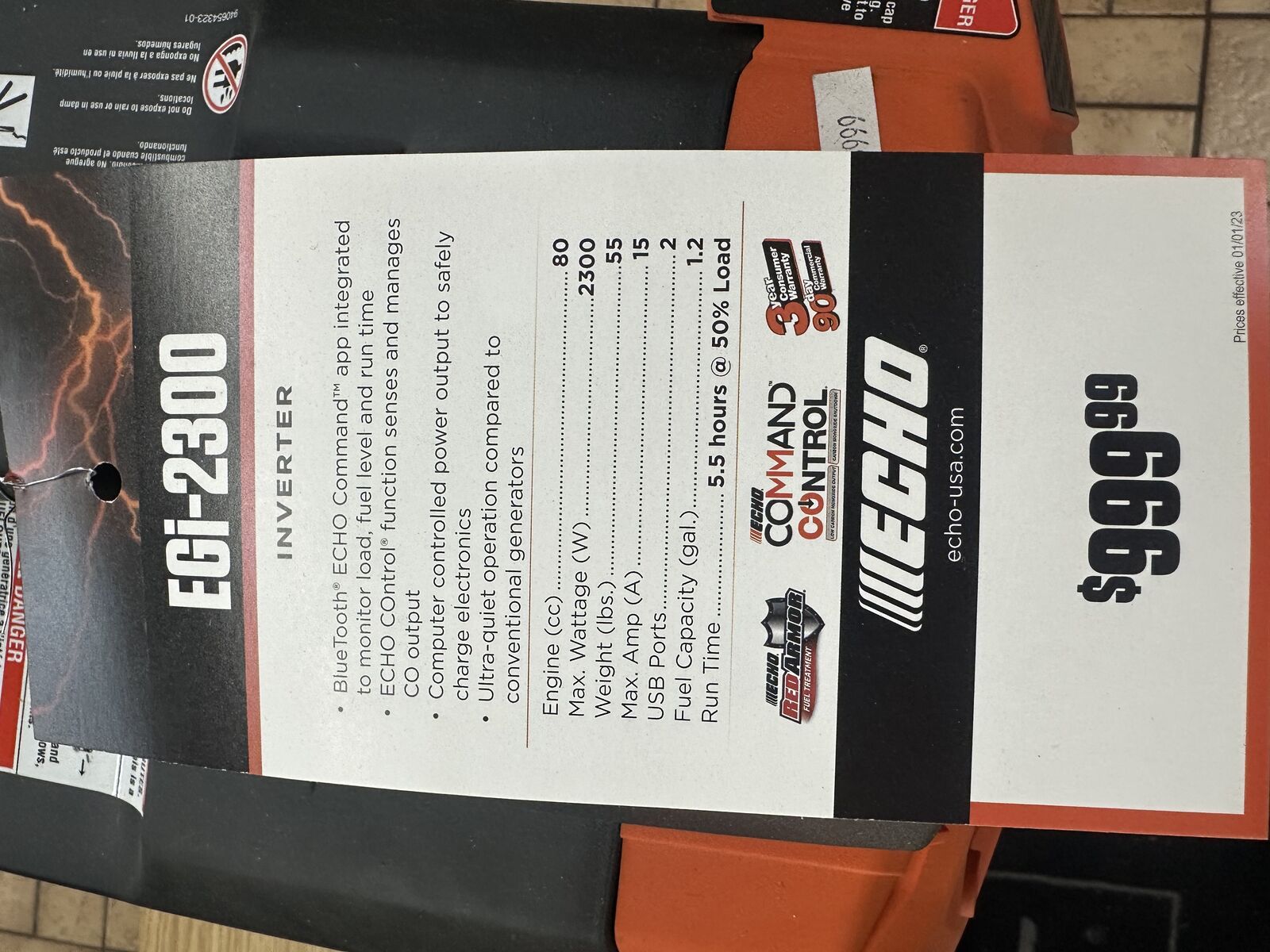 Easy energy. The EGi-2300 generator/inverter runs quietly and efficiently, perfect for adding power while camping, tailgating or backing up home essentials.