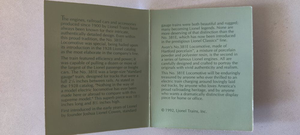 VenmoAuthentically detailed replica of the No. 381E locomotive, by Avon. Comes with wood base and in original box. Like new, never used