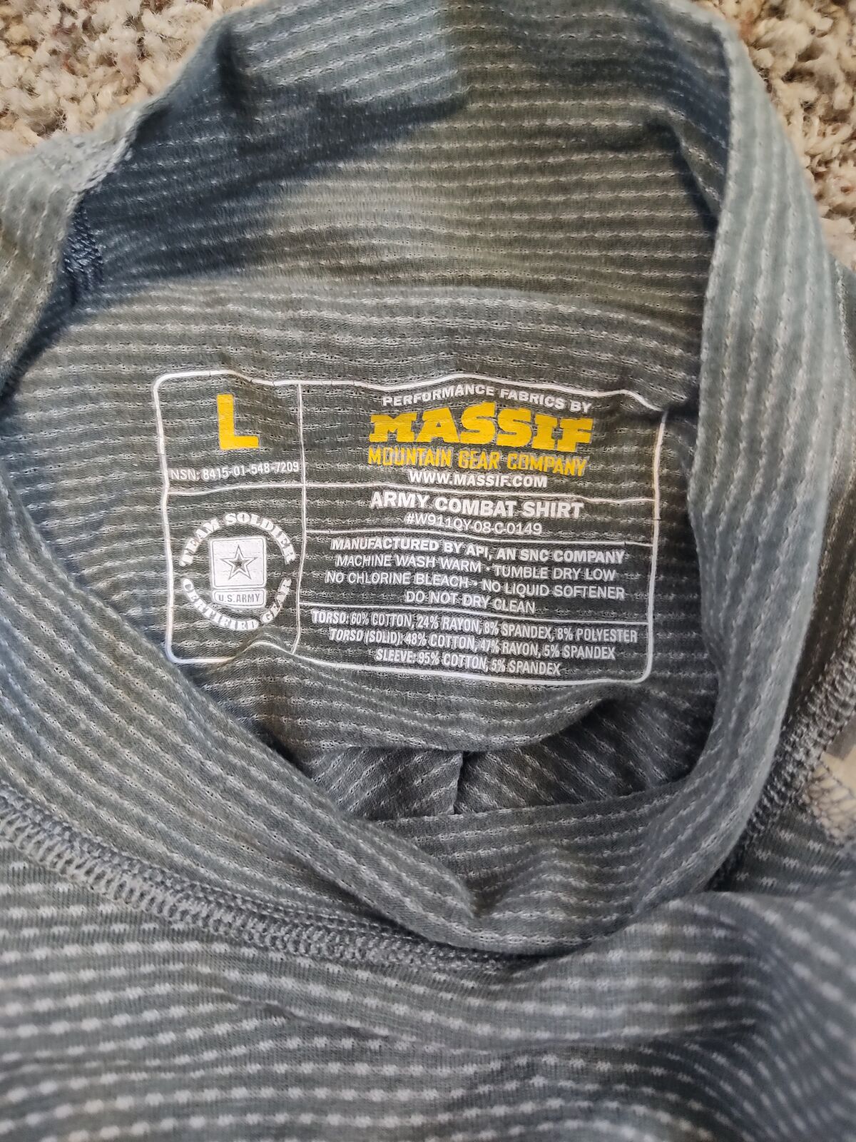 PayPalThe Army Combat Shirt Massif Flame Resistant in size Large is an original USGI ACU Digital Camo piece, manufactured in the United States with a military theme. This collectible item is a genuine piece of current militaria, ideal for enthusiasts and collectors interested in military uniforms and original items. The Massif brand ensures quality and authenticity, making this shirt a valuable addition to any militaria collection.