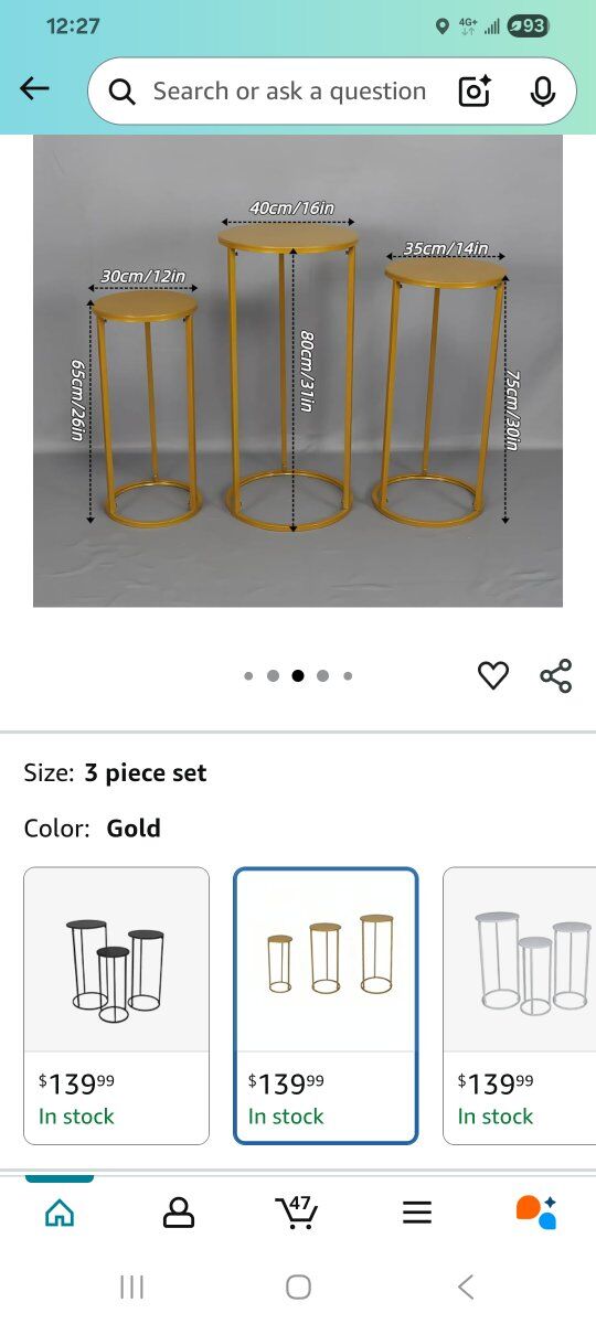 Venmoselling this new in box gold flower stands 3pcs asking $25
