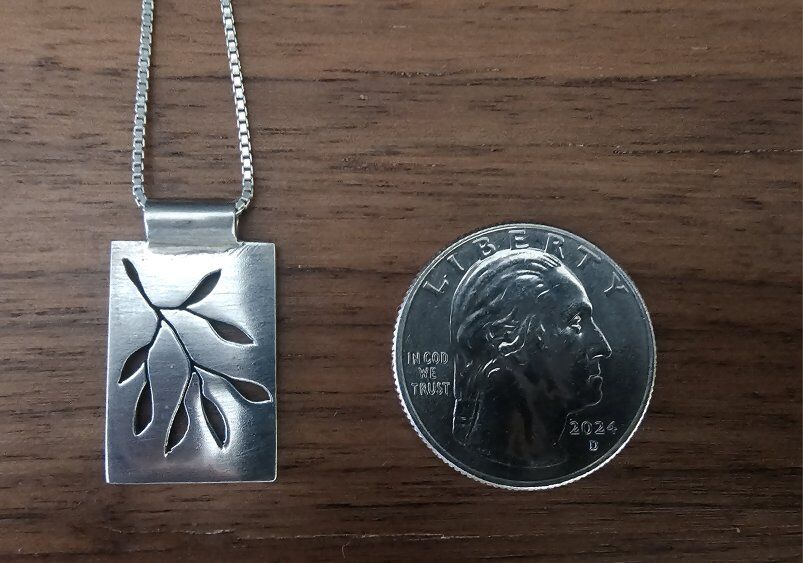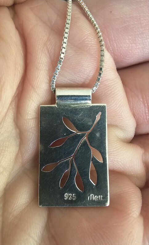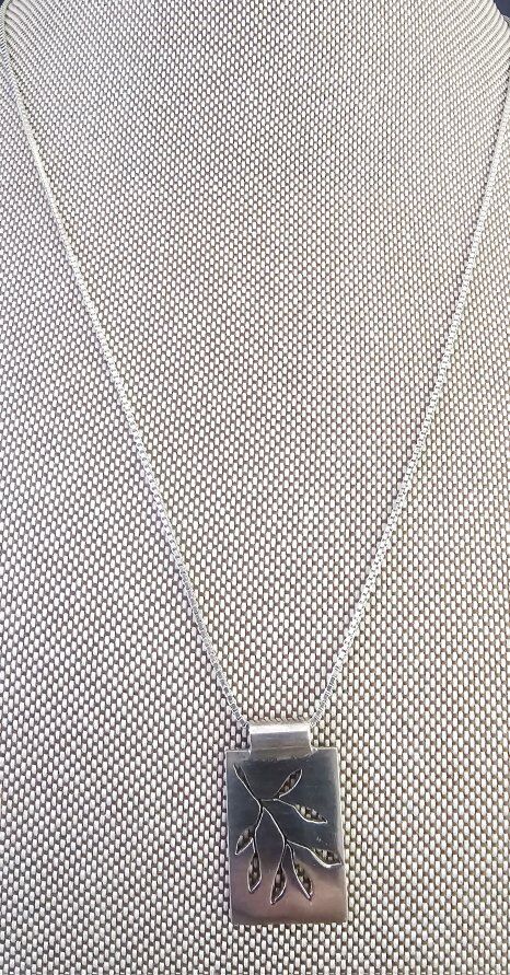 Shiny Sterling Silver INETT SIGNED and Hallmarked 925 simple & PRETTY necklace. Architecturally pleasing with its seven cut-out leaves and its smooth finish & rectangular edges. Comes with a nicely finished Steeling Silver 925 Italian made 18" BOX Link chain.