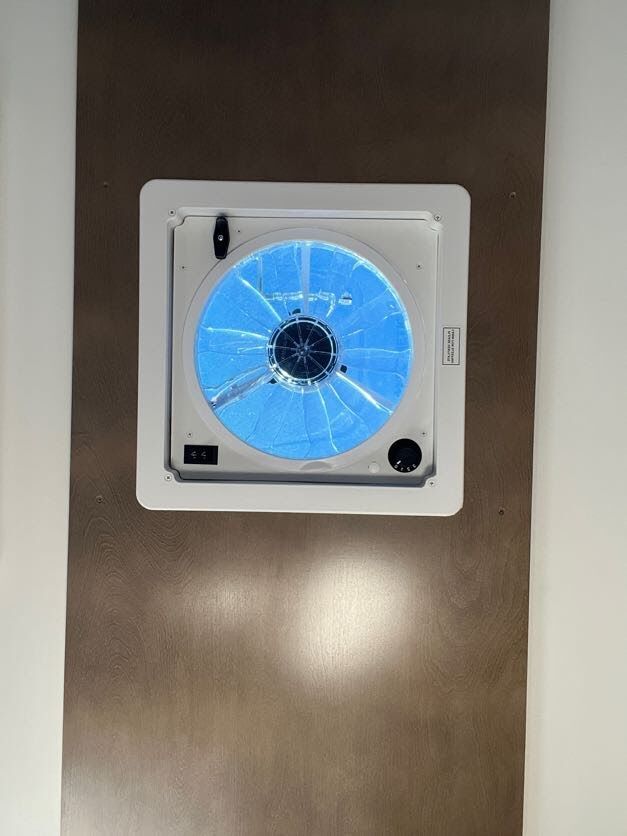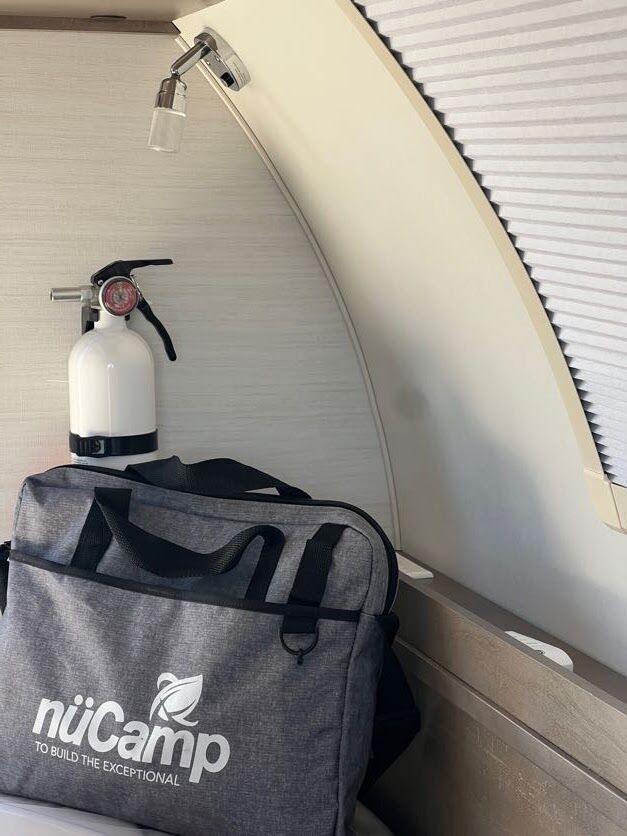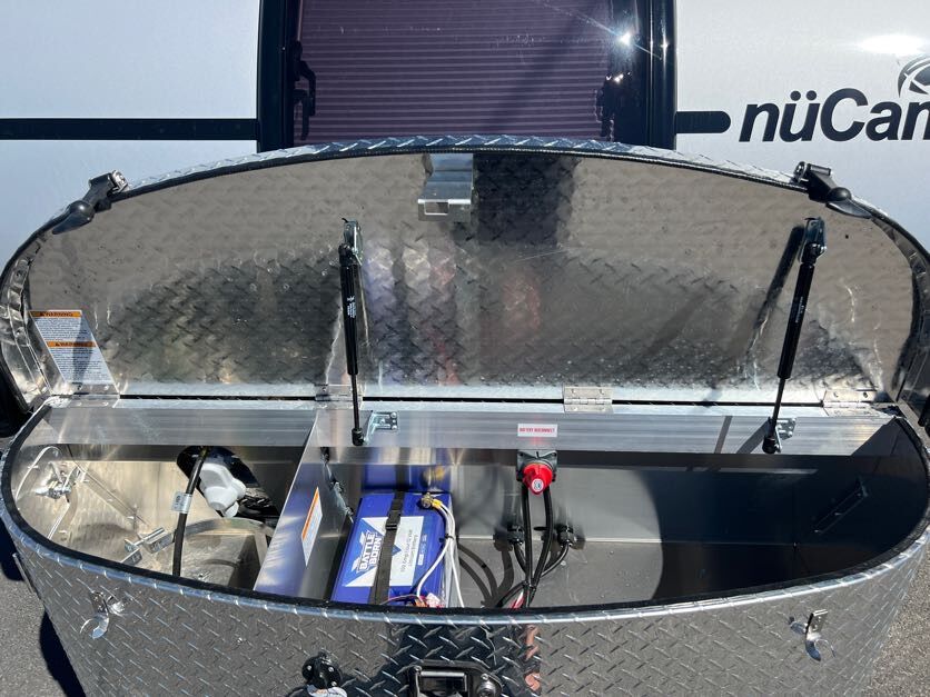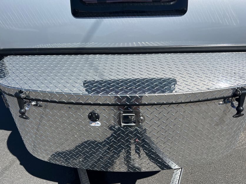 External LP hook-up, outdoor shower, and removable cutting board for campsite cooking