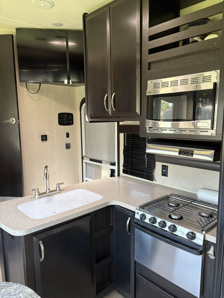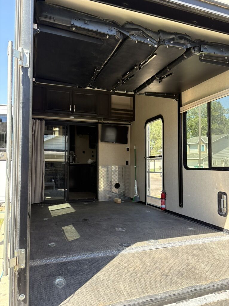 Super clean fifth wheel toy hauler. All season package, fully insulated underneath . Separate garage that fits my 2021 rzr xpt4 with 31 inch tires. The garage is 12’7” long. Brand new 14 ply tires on the trailer. Has dual sliding bunk beds in the garage. Looking to get a different trailer, only reason for selling. All appliances work wonderful. Built in generator, has a 2000 watt inverter. Message me for more information or pictures