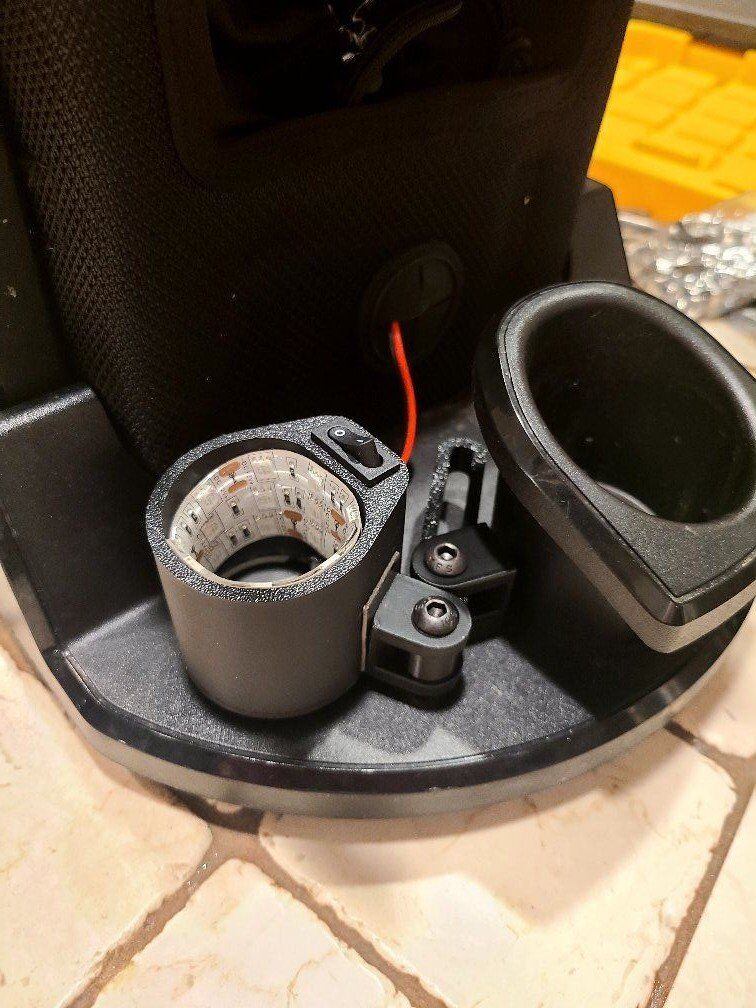 The cup has an on/off switch built in and is motion activated. kicks on when you drop in your lure and shuts itself off after 25 seconds.