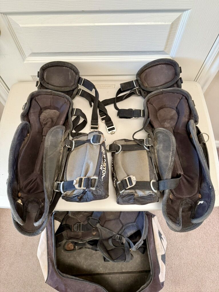Good condition. Everything works like it should. For ages 9-12-ish. See pictures. Comes with 2 sets of shin pads, a set of “Knee Savers”, chest pad and the Under Armor duffle bag. All for $80.