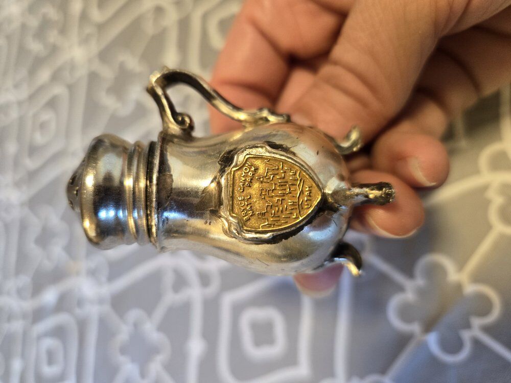 These are 2 sets of sterling silver salt and pepper shakers. Add these to your collection! One set is from New Mexico and one set is from Bryce Canyon National Park, Utah. Oddly enough, I found them at an antique shop in Missouri! Asking $10 each set, or both sets for $15.