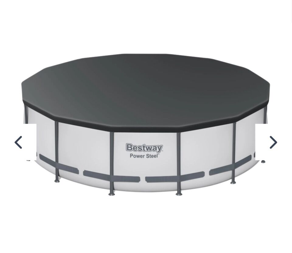 It doesn’t get any better than having your very own pool in your backyard! The Bestway® Power Steel® Above Ground Pools offer an ultra durable option at a great price. Durable Construction: The durable pool frame is constructed with superior corrosion resistant steel to ensure stability and longevity. The ClickConnect™ joints make setting the pool up a breeze, with no additional tools or accessories needed. Quickly click each support piece into place for a safe and secure connection. The frame connectors also prevent metal-on-metal contact to ensure corrosion and rust resistance. The sturdy Tritech® liner is made out of an ultra-durable 3-layer material that is reinforced for strength and puncture-resistance. Tritech is 15% more tear resistant, 33% more stretch resistant and 83% more puncture resistant than standard PVC, ensuring your pool will last summer after summer. Additional Features: This above ground pool set also comes stocked with a filter pump, a ladder and a pool cover. Plus, this pool is very simple to set up and to take down for off-season storage. No tools are required, and a hose connects to the built-in flow control valve to quickly and easily drain away pool water. Spend your summer on the water in this Bestway Power Steel pool! Size: 14 ft. x 42 in. (4.27 m x 1.07 m) Water Capacity (90%): 3,440 gal. (13,030 L) Tritech® enhanced 3-layer liner is 15% more tear resistant, 33% more stretch resistant and 83% more puncture resistant than standard PVC Corrosion-resistant steel frame is held together with ClickConnect™ joints, featuring quick-click connectors 800 gal. (3,028 L) filter pump included Easy, no-tool setup and takedown process Contents: 1 pool, 1 filter pump, 1 filter cartridge, 1 ladder, 1 pool cover