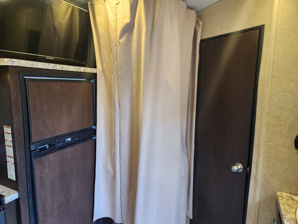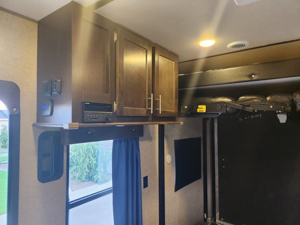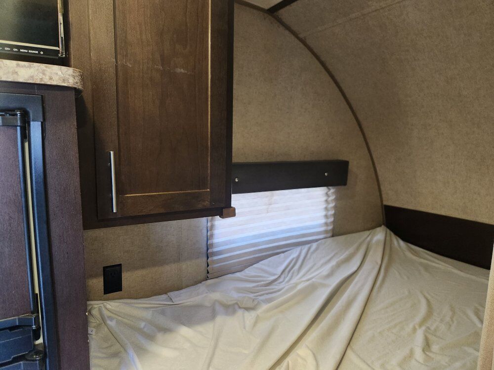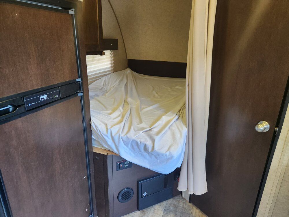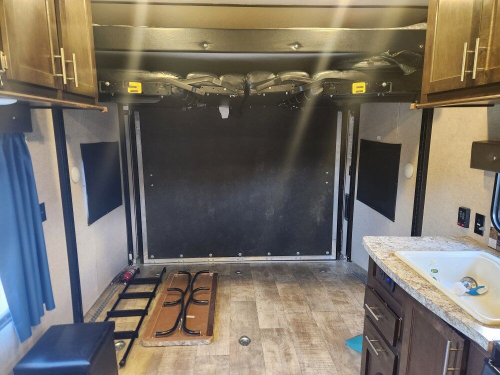 This toy hauler is a great use of space for the size. It sleeps a family of 6 comfortably. The Happijac bed lift in the garage has 2 queen beds. The lower bed is also adjustable to be 2 sofa chairs on either side with a table in the middle. Great size fridge/freezer and sink. It has a toy tank, outdoor shower, and an outdoor speaker system. Cleaned after every use. 25 ft. Long. 4,955 lbs. Text first with questions, then we can schedule a call if needed.