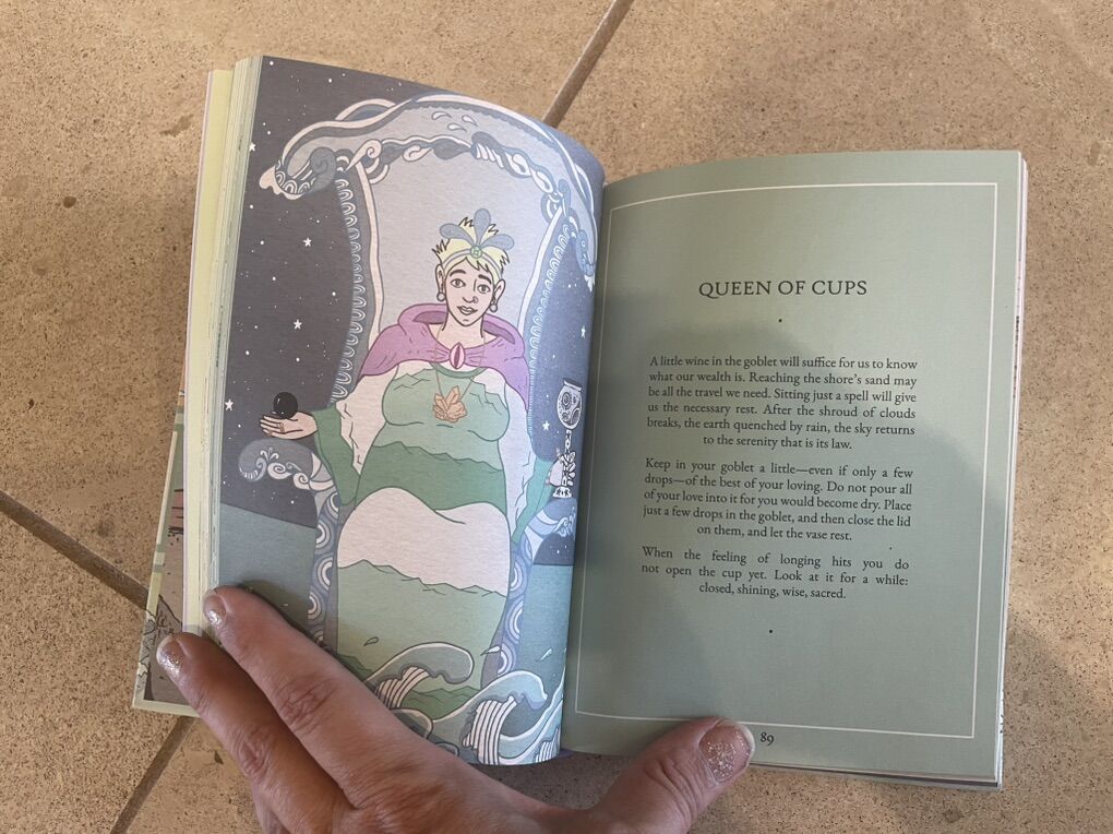 I have a new hardcover copy of A Poet’s Tarot by Josep Miquel Sobrer. It is a small but thick book. I took a picture of the back of the book with a description and a sample page inside. It was originally $16.99. See my other ads for jewelry, artwork, home decor and more.