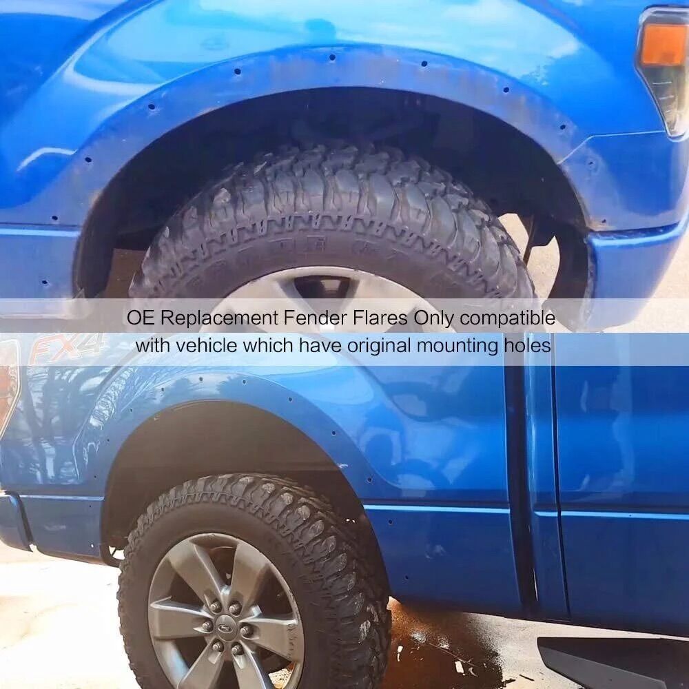 Compatible with 2015 2016 2017 Ford F-150 All Cab Sizes (King Ranch, Lariat, Limited, Platinum, Raptor, SSV, XL, XLT); Note: This is an OE Replacement Fender Flares. Only compatible with vehicles which have original mounting holes.