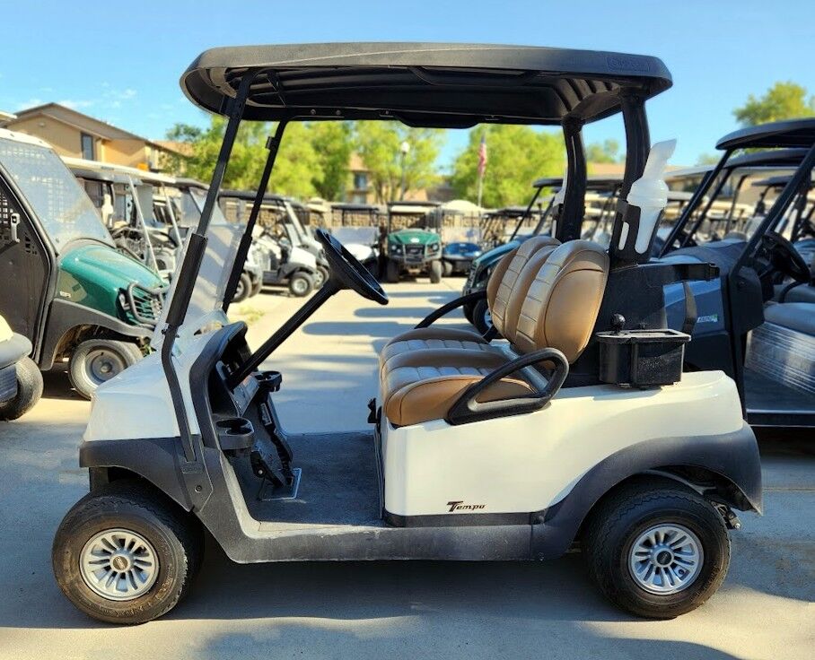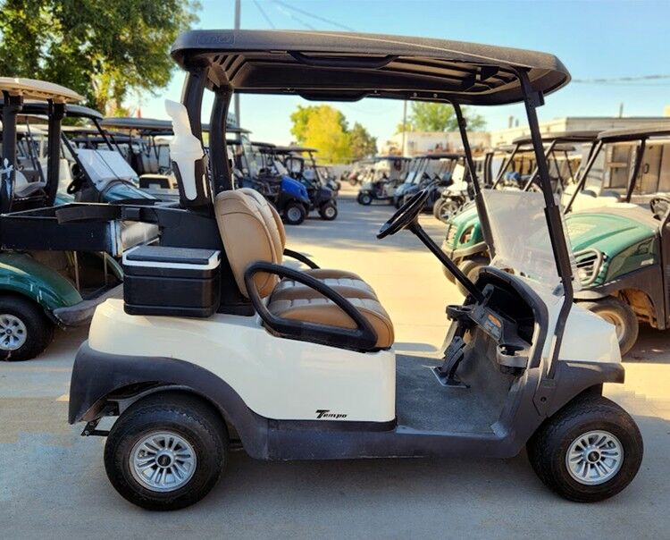 The Club Car TEMPO leads the golf cart industry with premium features including a rust-free aircraft-grade aluminum frame, molded-in-color bodies for lasting durability, and best-in-class turning radius. With superior styling, innovation, and durability, the TEMPO is perfect for your garage or golf game.