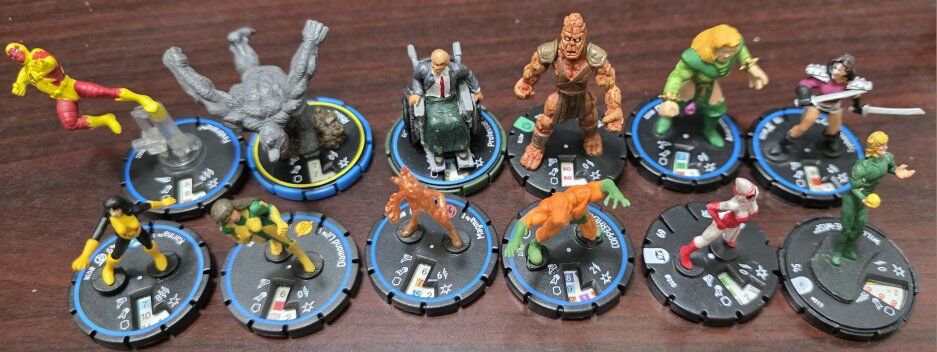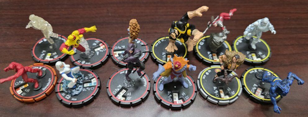 Pre-Owned HeroClix Colletible Miniatures, 36 figures, doesn't include cards.