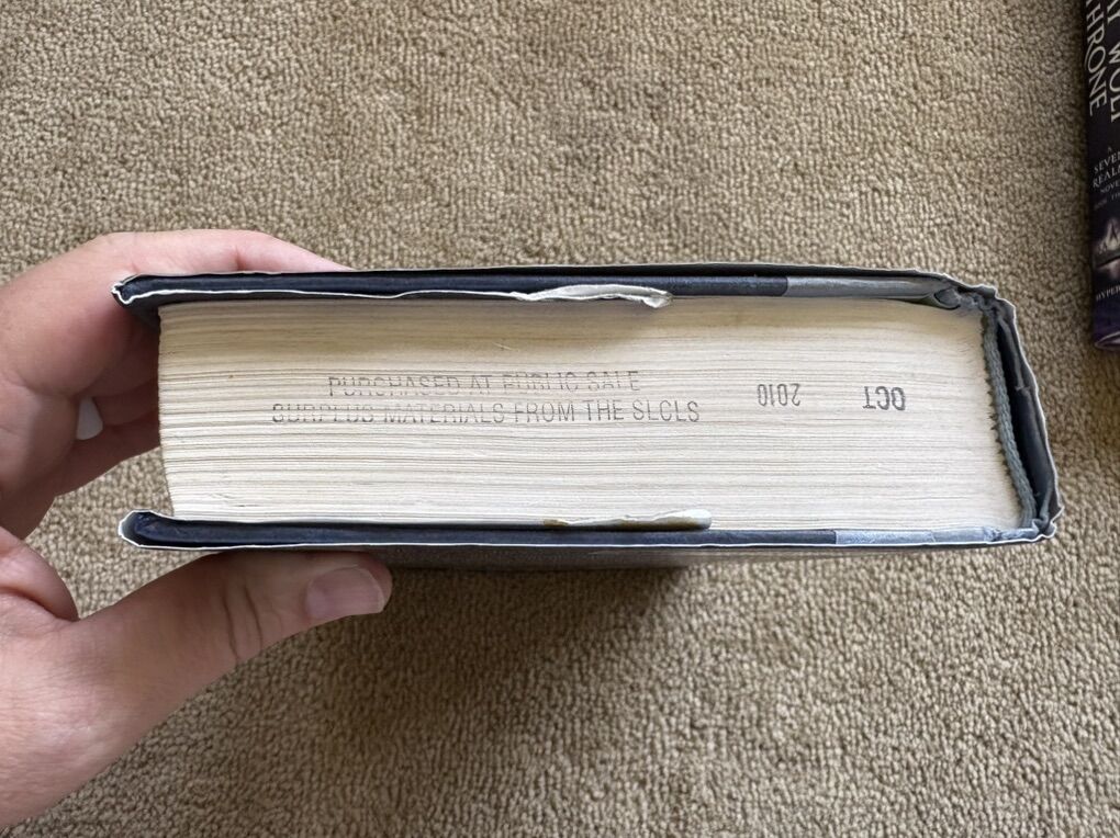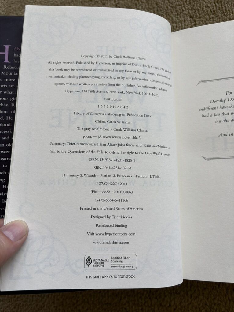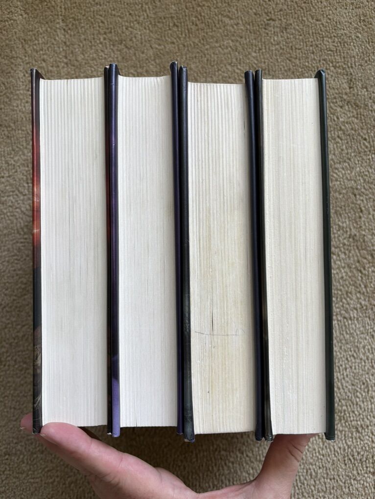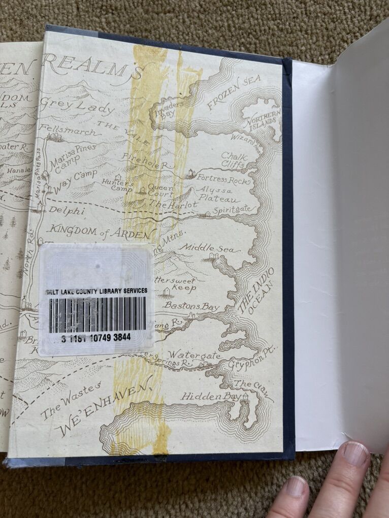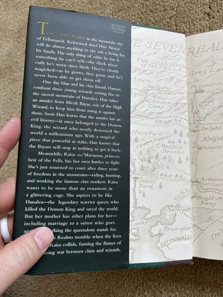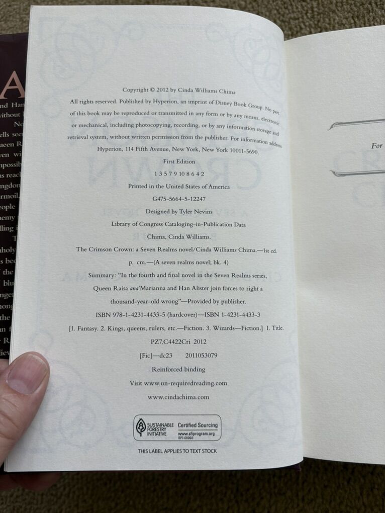 Complete Seven Realms Series books 1-4, by Cinda Williams Chima: The Demon King (2009, 506 pages), The Exiled Queen (2010, 586 pages), The Gray Wolf Throne (2011, 517 pages), and The Crimson Crown (2012, 598 pages). Disney Hyperion. First edition hardcovers 1, 3, and 4 in very good condition, including dust jackets. Book 2 in fair condition—former library book with some wear on cover and jacket, some stickers, and glue (see photos). No missing pages, no marks. Text only. Cash or Venmo. Discount on multiple items.