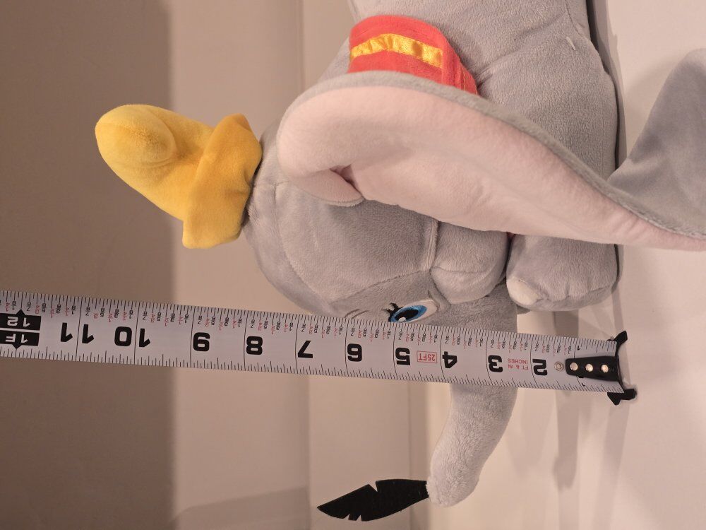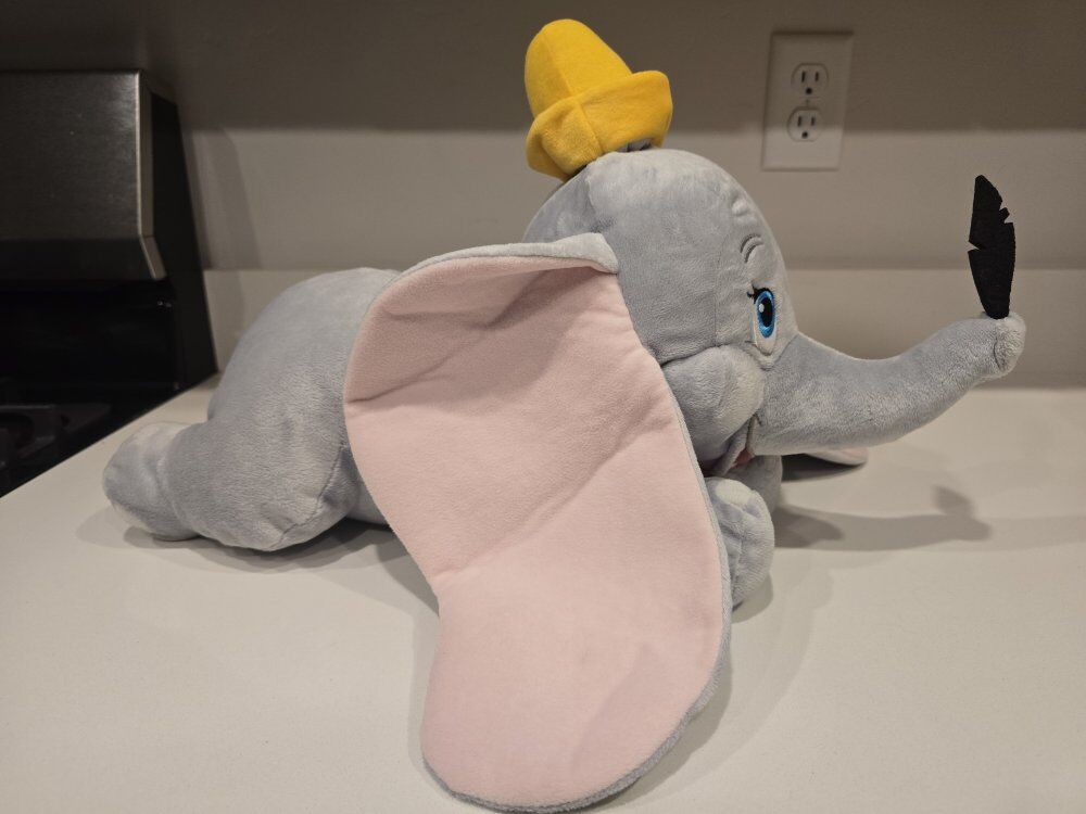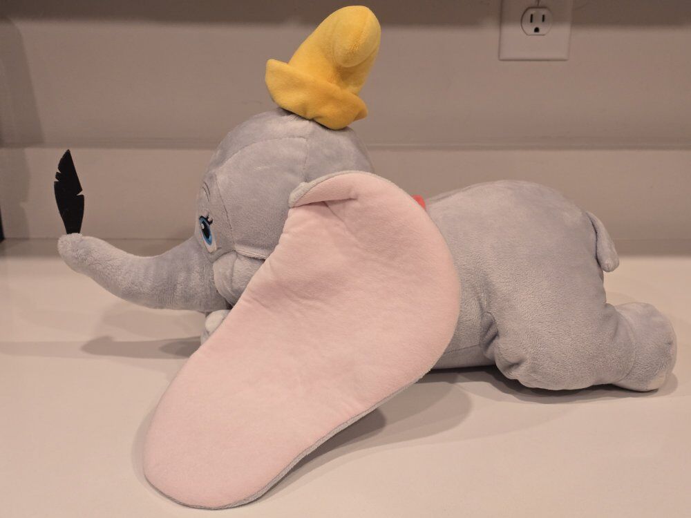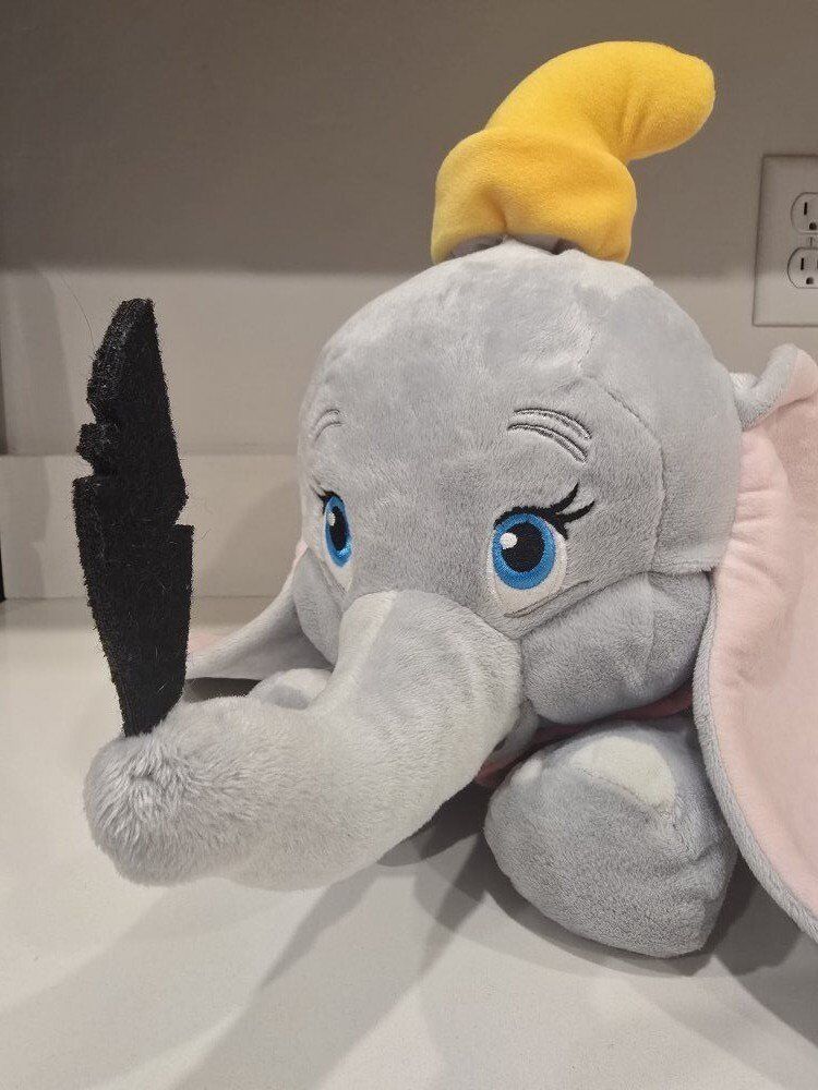 ZelleDisney Flying Dumbo Plush with Feather 18". Used but in good condition. Please see pictures, but let me know if you have other questions. Pick up only.