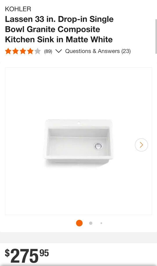 ZelleNew Kohler Lassen Single basin sink 33" matte white, the retail price is $275, you can buy it for only $170, texte me if you're interested