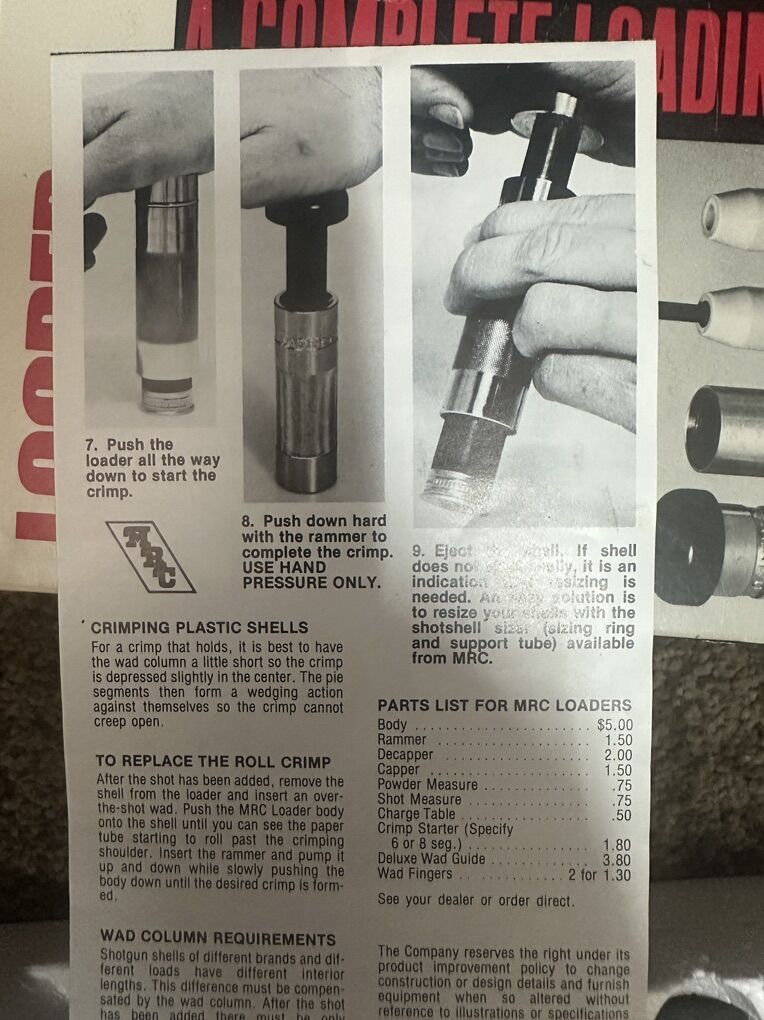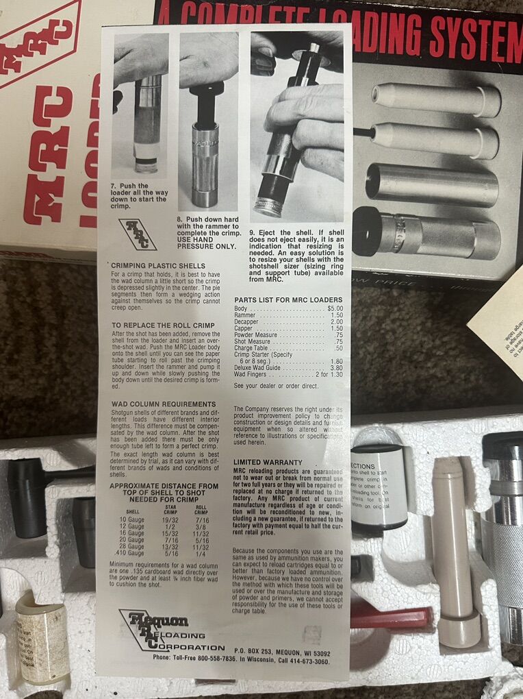 The original MRC loader. A complete loading system. Includes full length wad starter.