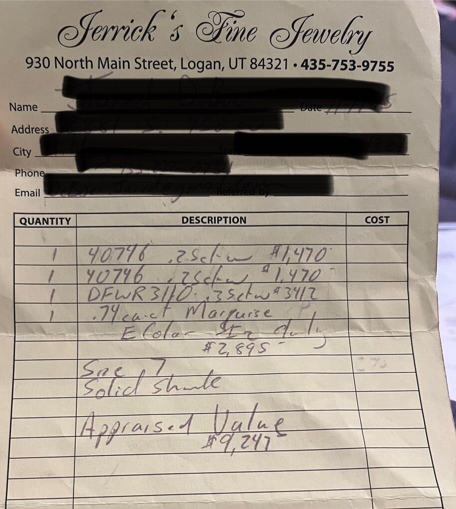 $6,000 custom wedding ring. Over 9k appraised value. Not lab grown. I have all of the paperwork. Happy to meet you at any jewelers for verification. Very stunning and sparkling.