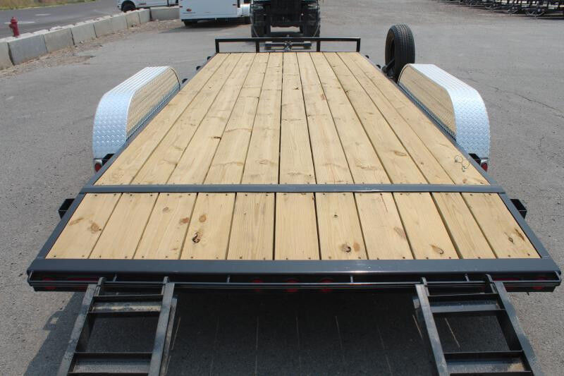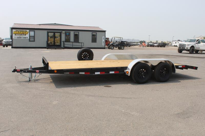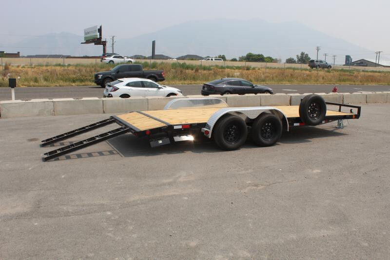 Stock Number: PJ6168 Trailer Includes Following Options: 2' Dovetail w/ Rear Slide In Ramps Standard Options: 7,000 lbs. GVWR 3,500 lb. x (2) G.A.W.R. 5/16" Grade 30 Safety Chain w/Clevis hook (2 each) Bulldog Pipe Mount Swivel Jack (5,000 lb.) 2 - 3,500# (Dexter) Electric Axle 4-Leaf Double-eye Spring Suspension 15" Black Spoke Wheels ST205/75R15 Radial Tires (1,820 lbs.) 3-1/2" x 1-1/2" (ID) Stake Pockets 9" x 33" Treadplate Removable Aluminum Fenders 4" Channel Tongue 2-1/2" Angle Crossmembers on 24" Centers 2" Treated Pine Lumber Deck 83" Wide Deck All-Weather Wiring Harness (7-way RV) Powdercoat 5 year Dexter Axle Warranty WASATCH TRAILER SALES - LARGEST TRAILER SELECTION IN UTAH Springville: (801) 528-1581 | 1180 S 2000 W, Springville UT, 84663