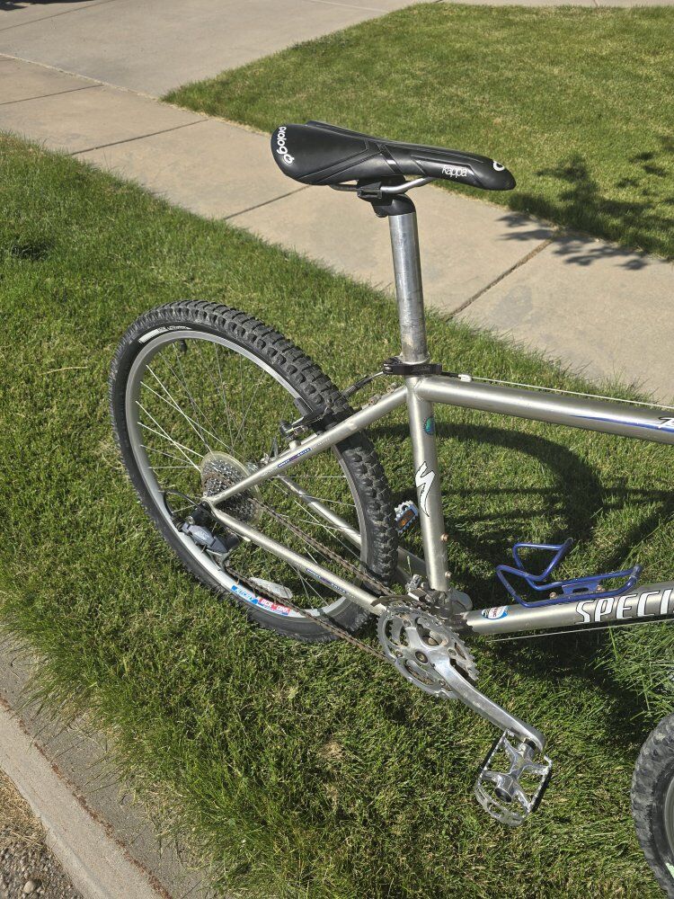 Steel is real! What a nice Rock hopper. Ritchie chromolly frame! One small ding in the frame on the seat stay. Does not effect structural integrity or ride quality at all. Otherwise the frame is in very good condition for it's age. Shifts good through it's 27 speed Shimano drive train. V brakes work great. Wheels are true and have good tubes and tires with sealant. 17" medium frame rides great. Surprising to see a Ritchie tube set in a Rockhopper as opposed to their higher end stump jumper, especially considering Specialized never names their tube sets and always calls them direct drive. People also ask What is Specialized direct drive? Specialized liked to coin a unique name for their bikes tubing that didn't pin it down to one supplier or manufacturer. Direct Drive was one of those names and it could be used for Tange-supplied tubing or same spec tubing from another source. It was seamless, drawn, and butted 4130 CrMo and that's what's important.