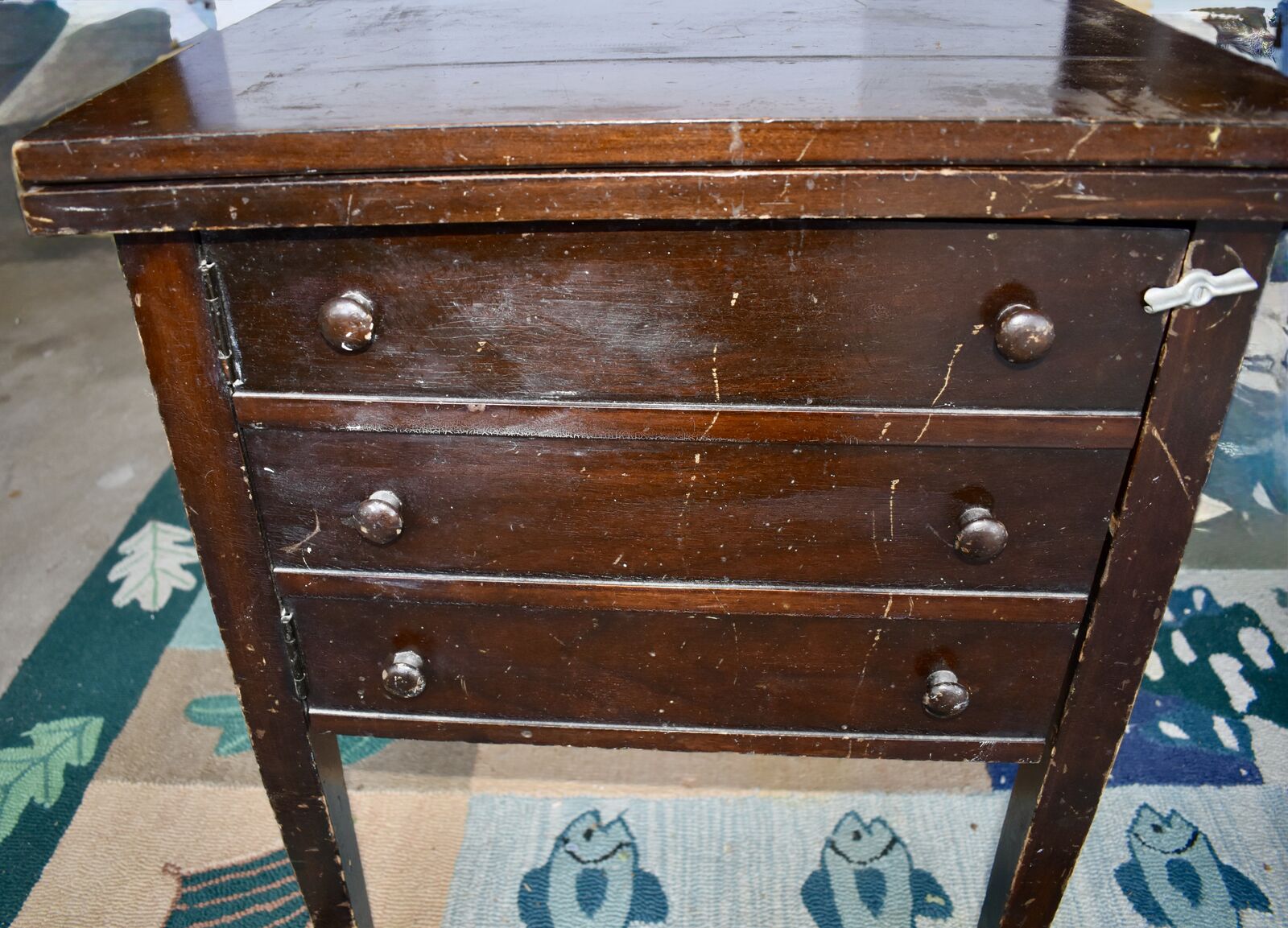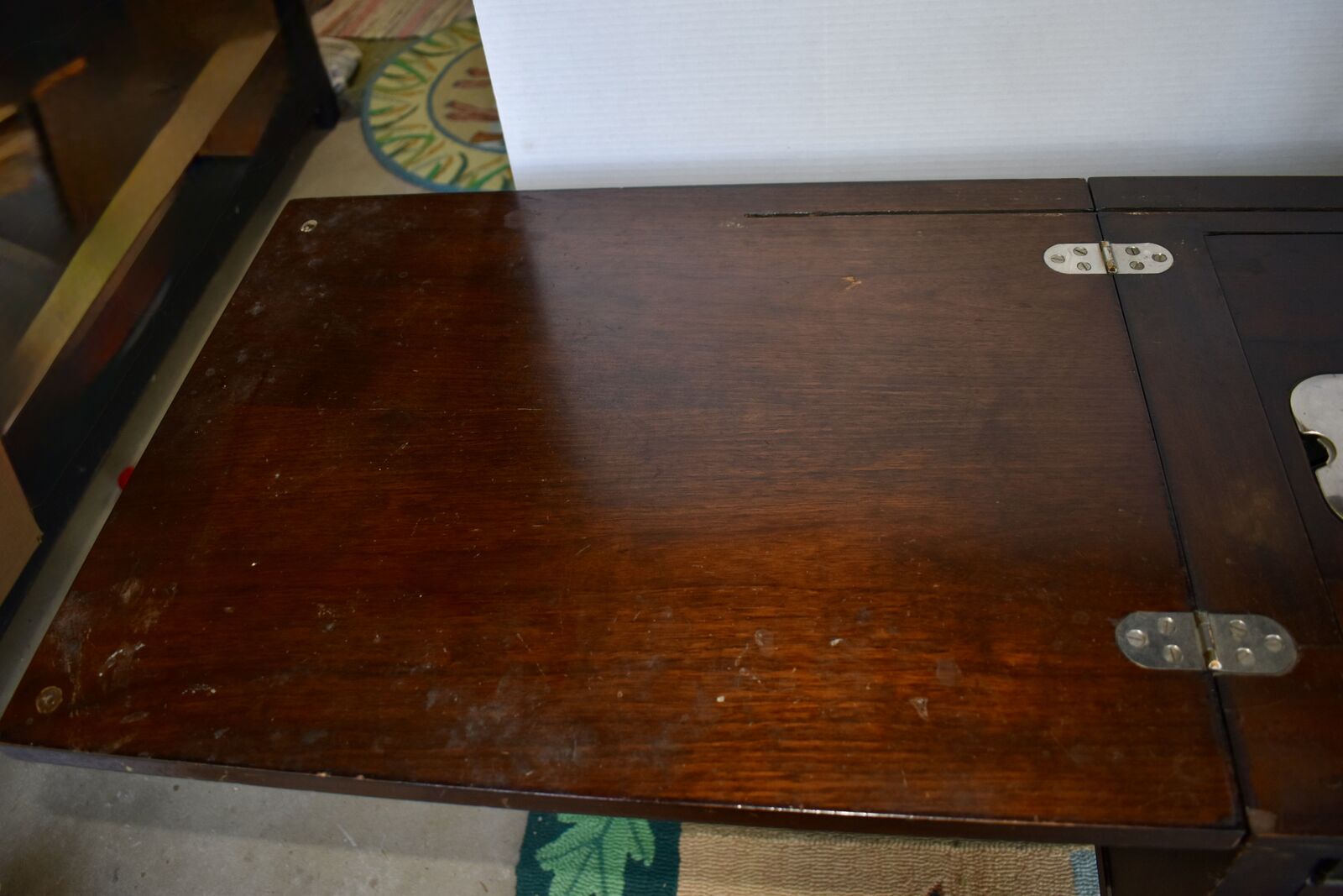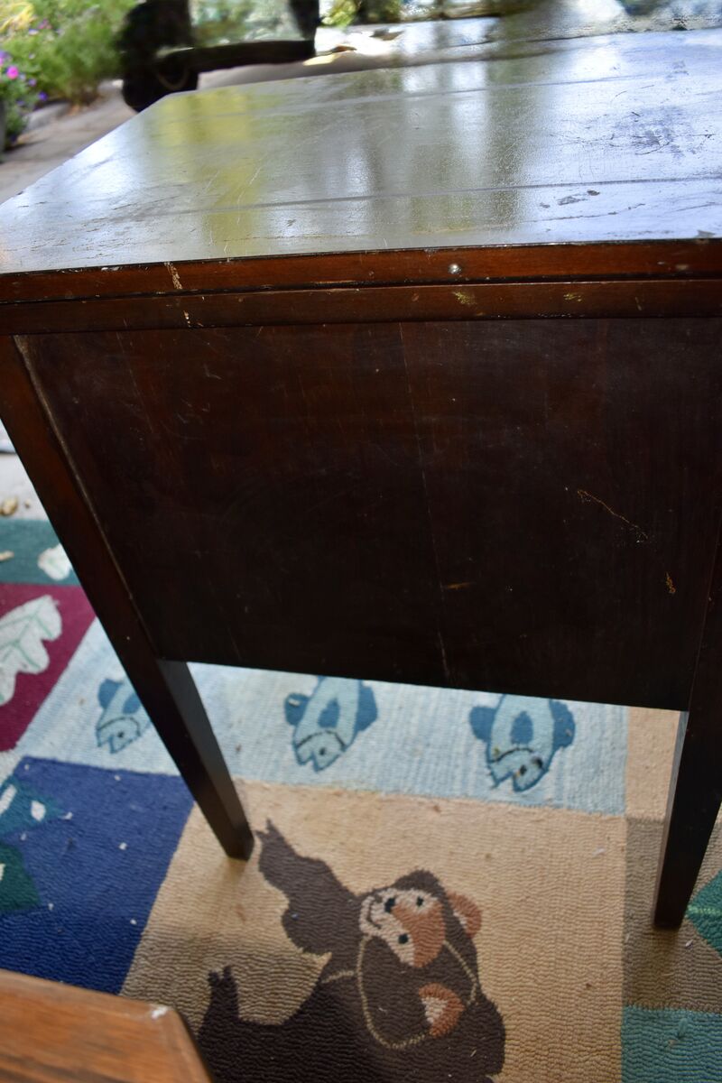 IT MEASURES…It is approx. 30 1/2 inches tall, 23 3/4 inches wide when the table is not open. It is 16 !/2 inches deep. With the table open it measures… approx. 47 1/2 inches